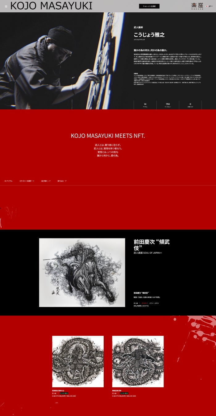 武人画師・アーティストこうじょう雅之氏は、戦国時代や三国志の武人を描く「武人画」の制作で国内外から絶大な人気を集めるクリエイターです。こうじょう雅之氏は、本サービスの公認クリエイターとして、個人ショップを2023 年 8 月 4 日から開設しております。