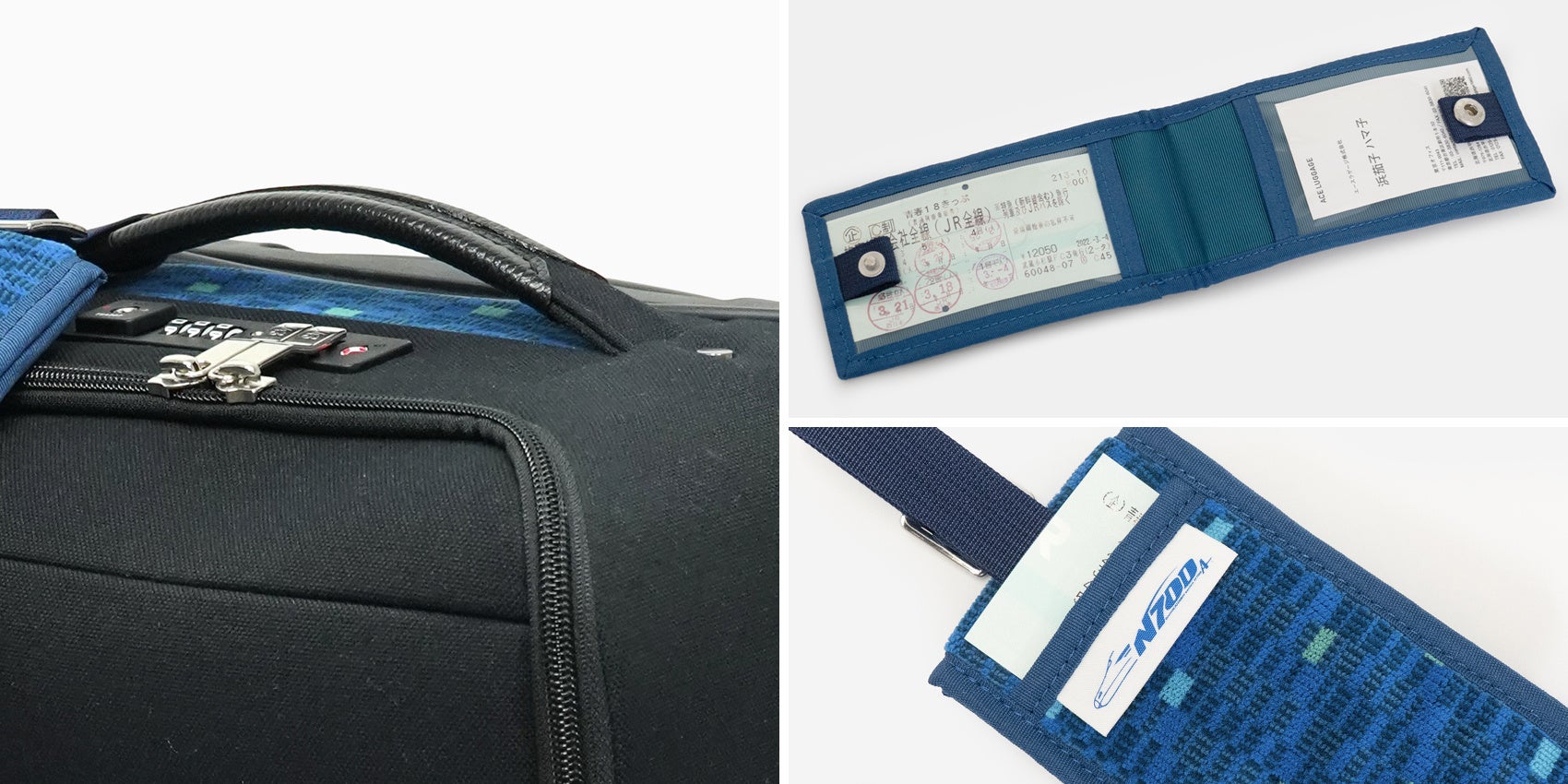 全ての商品に、実際に東海道新幹線N700系typeAの普通車に使用されていたブルーの座席生地を使用。