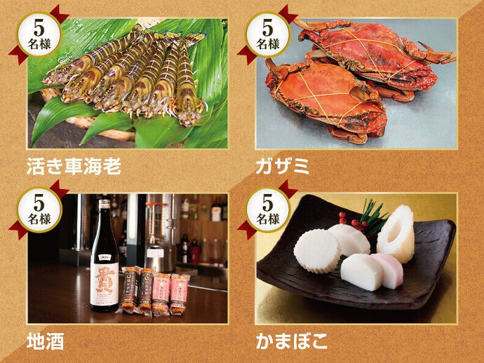 抽選で、宇部の特産品が当たる!活き車海老、ガザミ、地酒、かまぼこ(各5名様)