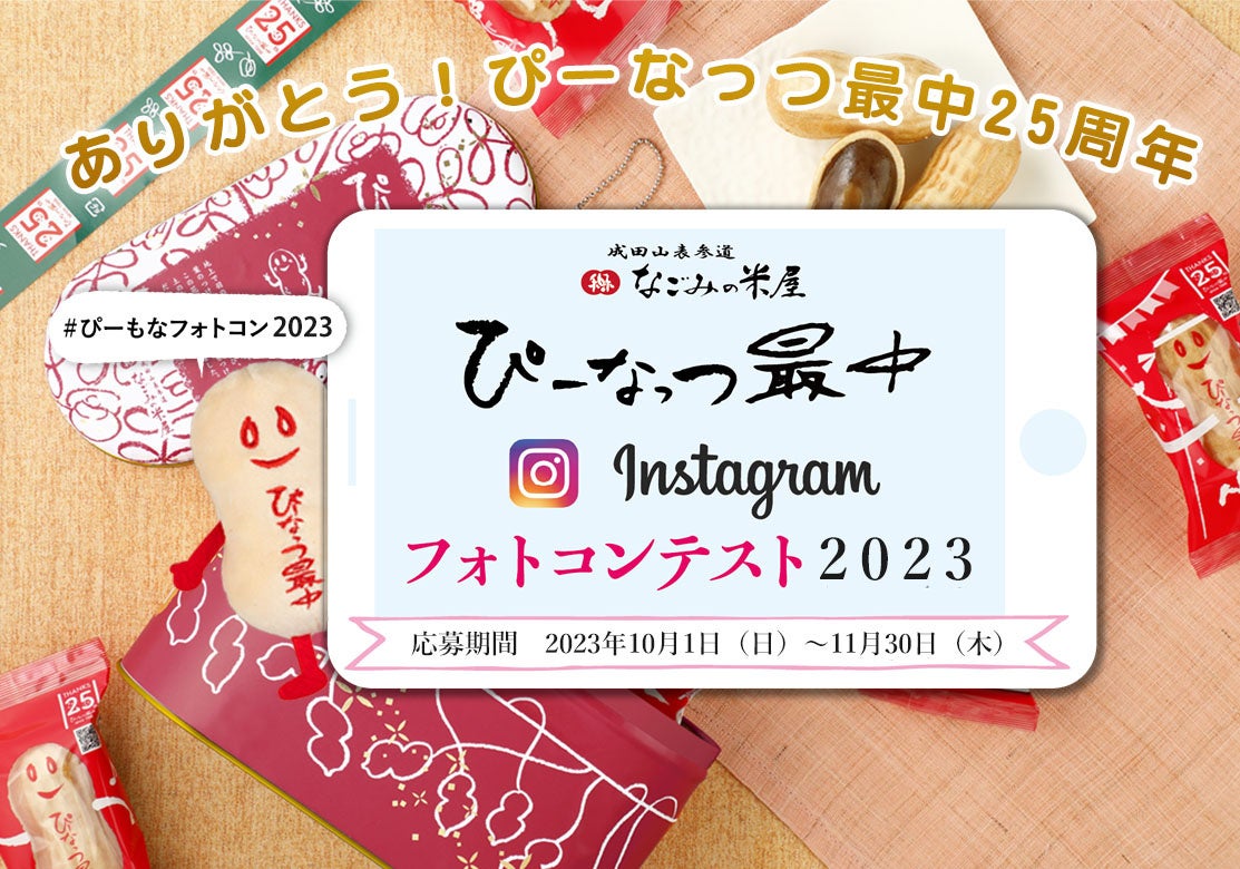 公式Instagramアカウントでも、10月1日から「ぴーなっつ最中Instagramフォトコンテスト2023」を開催し、当選者25名様に記念商品「ぴーなっつ最中25周年記念缶 6個詰」をプレゼントします。