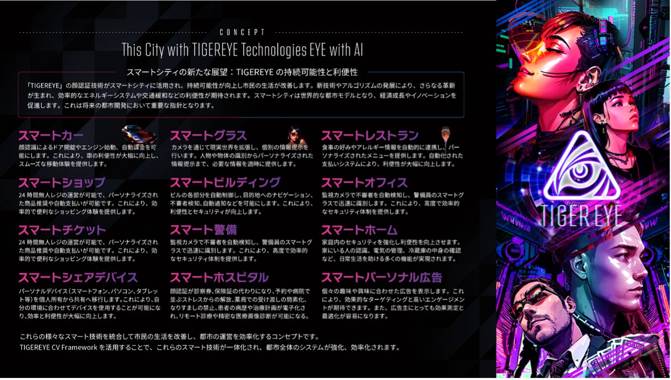 TIGEREYE COMPUTER VISION FRAMEWORKやTIGEREYE AUTH SCORINGがスマートシティ構築に活用されることで様々なスマート技術が一体化され、持続可能性が向上し、効率的なエネルギーシステムや生活の利便性が高まります。