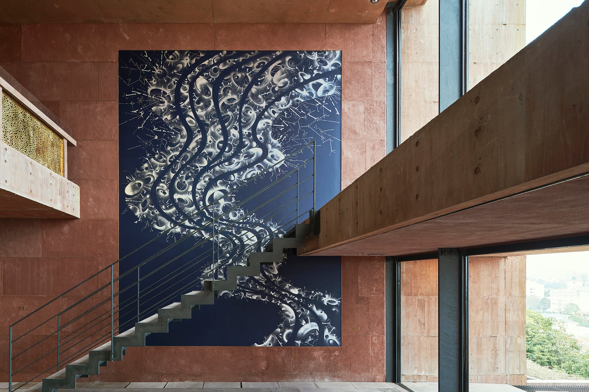 今回の催しでは、第一部では、鈴木ヒラク氏のこれまでの制作活動やご著作から「点・線・面からチューブへ」をテーマに「別府」ならではのお話を、鈴木氏の手元を投影しながらお話いただく予定です。第二部では、建築との関わりを絡め「アートと建築をつなぐもの」について深掘りしてまいります。