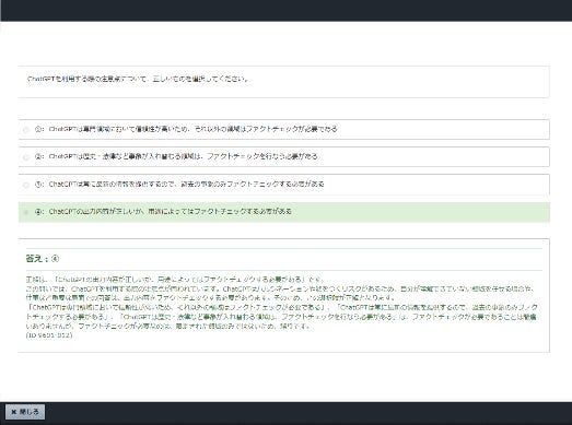 修了テストが用意されているため、社内の意識あわせに利用することも可能です。