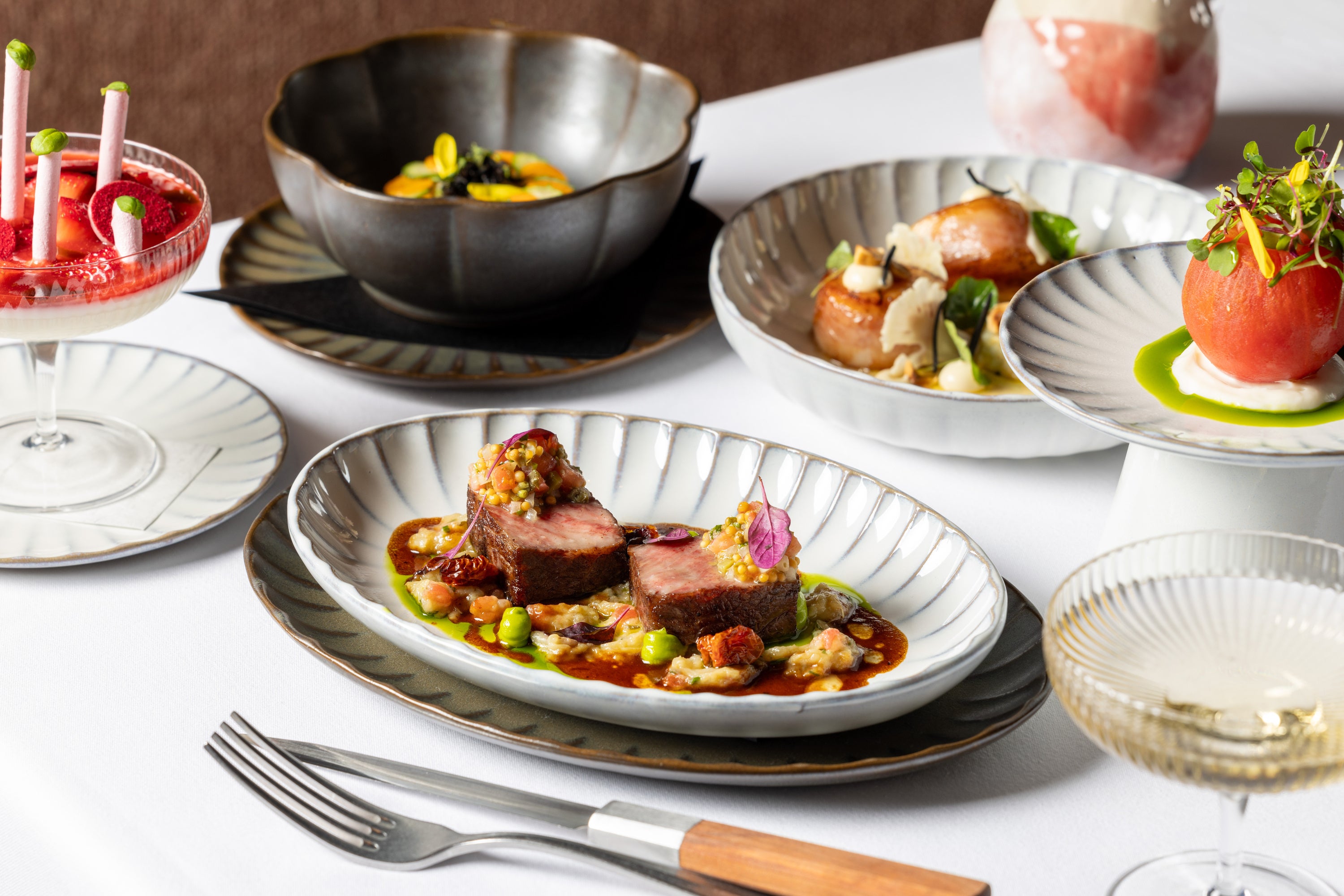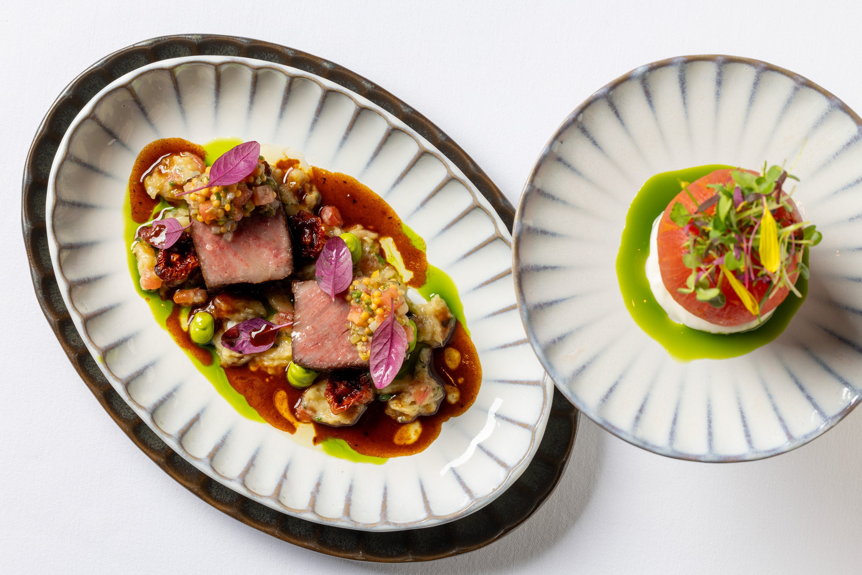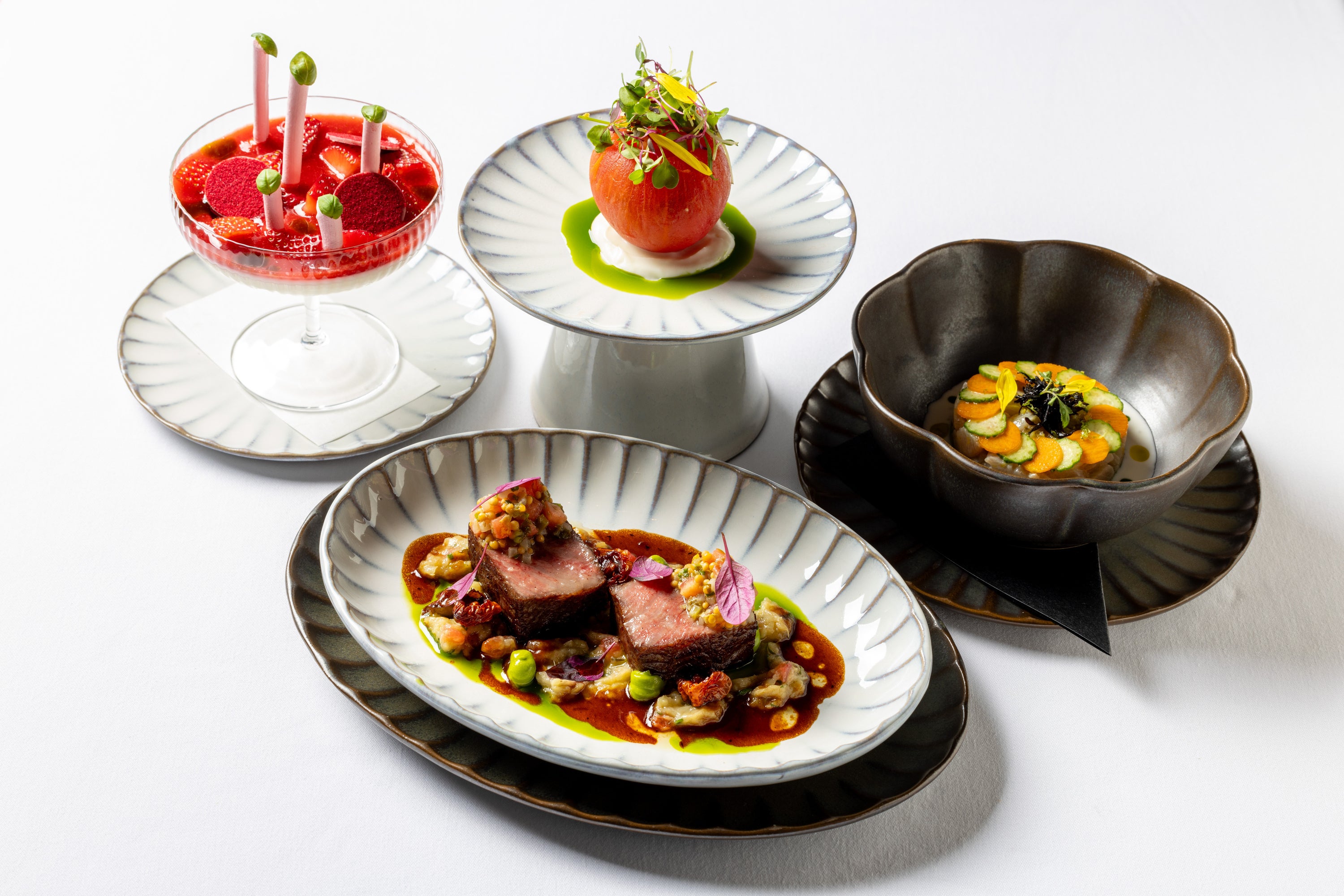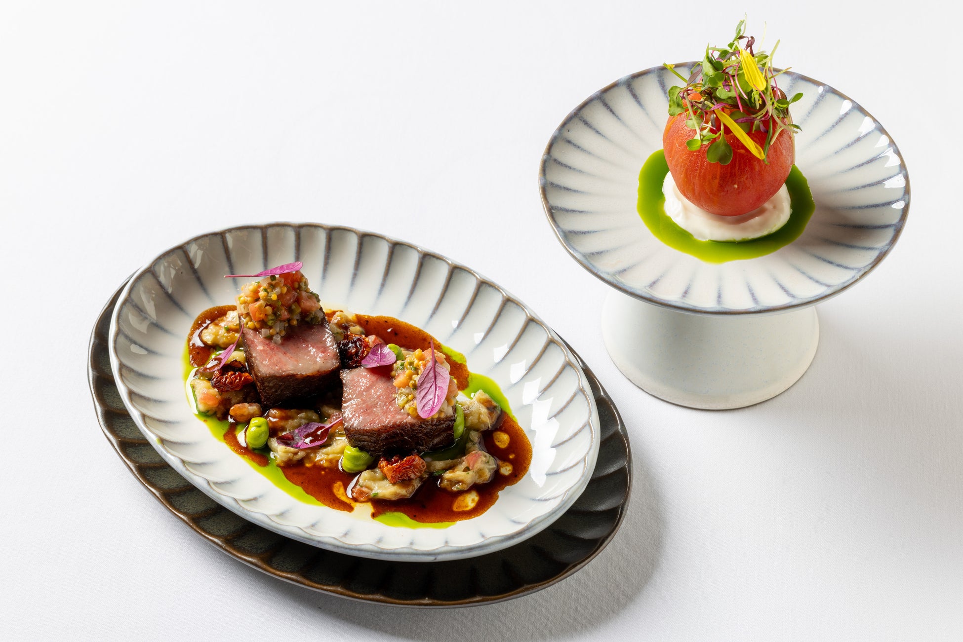 シェフ厳選の国産あか牛を柔らかくローストし、クラシックなトマトのサイドディッシュをセルジオならではのアレンジで“NEW ITALIAN”に昇華させた、ル・プリスティン東京オリジナルメニュー。米ナスのカポナータとともにいただく力強いあか肉の旨味と、クリーミーでフレッシュなトマトのディッシュが軽やかに調和し、奥深い味わいをお楽しみいただけます。
