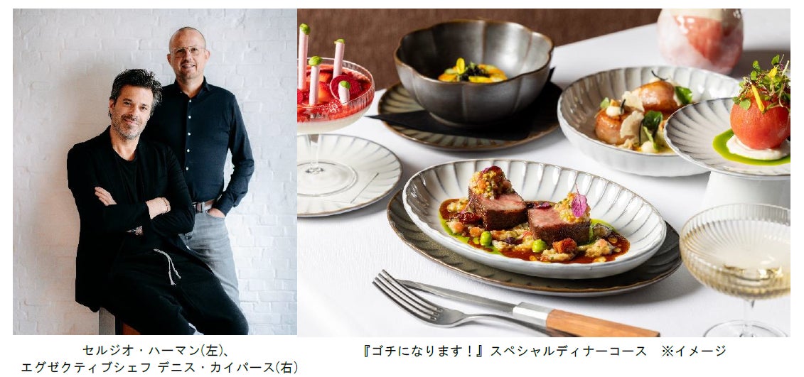 この度、「ル・プリスティン東京」は国民的人気グルメ番組「ぐるぐるナインティナイン ゴチになります!25」の番組放映に伴い、シェフ セルジオと共にエグゼクティブシェフ デニス・カイパースが趣向を凝らし、新たに特別メニューを考案。「ル・プリスティン東京」ならではの五感で楽しむ食体験をより多くの皆さまにお届けしたいというシェフたちの強い想いから、今回のオリジナルメニューを期間限定でお試しいただきやすい特別料金にてご提供いたします。番組内で紹介され、出演者からも絶賛された「宮城県産ホタテのソテー カリフラワー添え」や「国産あか牛のロースト 米ナスのカポナータ添え」など、特別にアレンジしたスペシャルコースをランチおよびディナーでお楽しみいただけます。出演者の舌を唸らせた独創性あふれる唯一無二の“NEW ITALIAN”を、この機会にぜひ心ゆくまでご堪能ください。