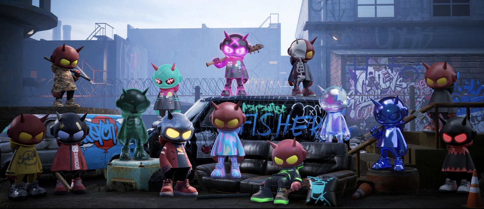 SWAGGAのキャラクター『ONIMARU』がメタバース空間からリアルに飛び出し、最前線で活躍する芸術家・クリエイター達がオリジナルONIMARUアートフィギュアを制作し、現代アートをもっと楽しくをテーマに展示会を企画運営する+ART GALLERYで展示する企画になります。