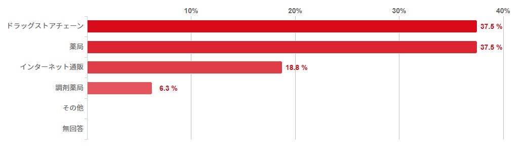 ミクロゲン・パスタを使用したことがあると回答された方に、「ミクロゲン・パスタ」をどこで入手したかを尋ねたところ、「ドラックストアチェーン」37.5%、「薬局」37.5%とリアル店舗が多く、楽天、ヤフーショッピングなどのインターネット通販が18.8%とネット販売の利用も増えています。また、最近健康サポート薬局しとして、調剤薬局でのお取扱いも開始しています。いずれの場合も第一類医薬品の「ミクロゲン・パスタ」は薬剤師さんのいる第1類医薬品でお取扱いがあります。薬剤師さんから説明を受けて確認の上お買い求め下さい。OTC医薬品のため医師の処方せんは不要です。