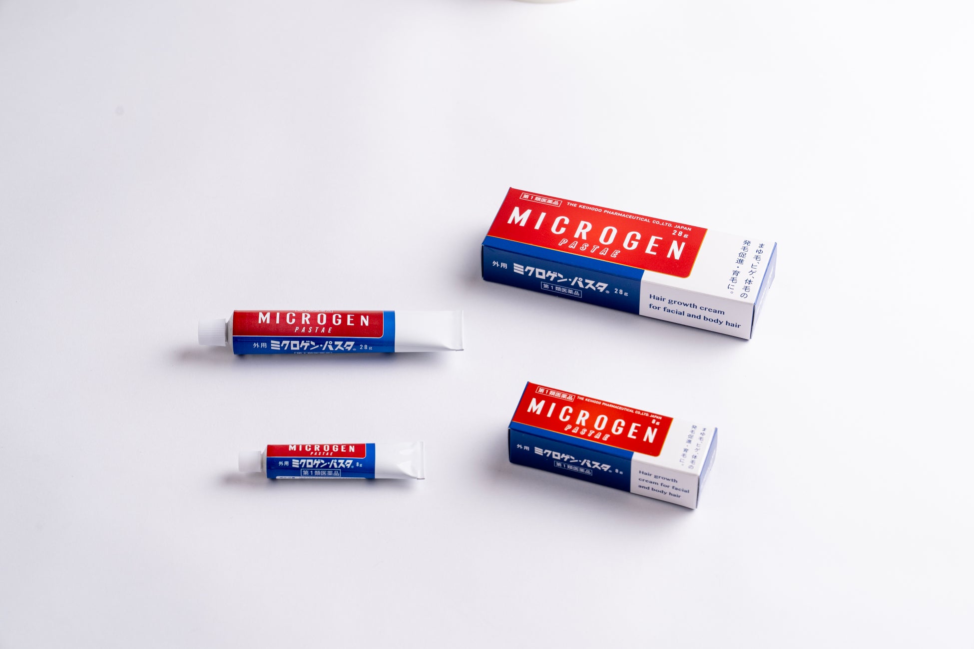 「ミクロゲン・パスタ」は、まゆ毛、ヒゲ、その他の体毛用発毛・育毛剤(第1類医薬品)で、2種類の男性ホルモンを主成分とするクリーム状の外用薬です。(頭髪、マツ毛には使用出来ません)「ミクロゲン・パスタ」を対象の部位に塗布すると、皮膚から浸透した有効成分が毛母細胞に作用し、頭髪以外の顔と体の「毛」の発毛・育毛効果が期待できます。「ミクロゲン・パスタ」は第1類OTC医薬品で、全国の薬局、ドラッグストア、ネット通販(楽天、ヤフーショッピング等)の第1類医薬品取扱い店舗で購入できます。