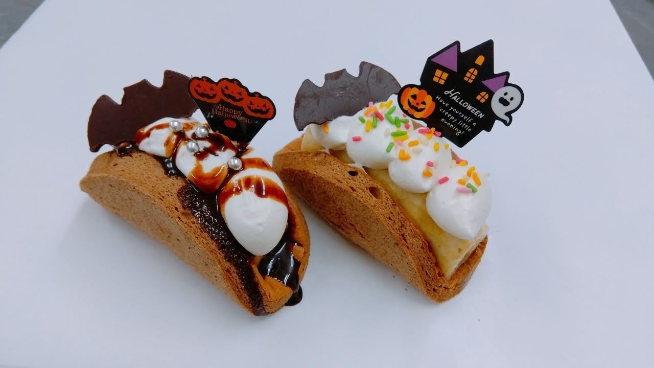 コウモリのチョコレートやカボチャランタンのピックなどで、「生バナナケーキ」をハロウィン風にデコレーション! パティシエ指導のもと、お子様オリジナルの生バナナケーキが作れます。