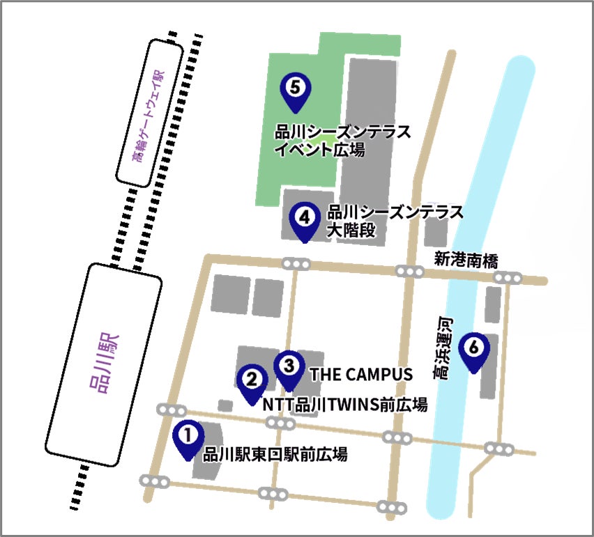 品川港南エリアは、品川を拠点とする企業に通勤するワーカーが集まるほか、湾岸エリアにはタワーマンションが並び、将来的にも若い世代の増加が見込まれるなど、ワーカー、住民そして来街者が混在する多様なコミュニティをもつエリアとなっています。また、高浜運河の水辺空間や品川シーズンテラスをはじめとした緑地など、豊かな自然環境も有しています。本取り組みでは、こうした品川港南エリアの魅力となる水辺や緑地などのスポットを中心に、全6か所にXRコンテンツを配置することで、品川港南エリアに住み、働き、訪れるみなさまに対し、品川港南の魅力再発見につながる回遊や滞在を促します。