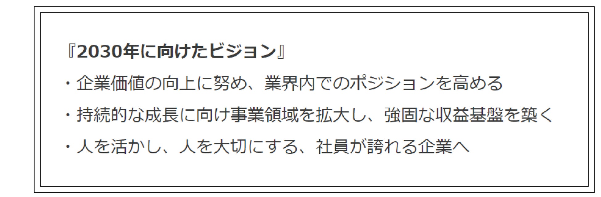 当社は、社会の持続的な発展に貢献するため、将来のありたい姿を示す『2030年に向けたビジョン』を策定し、ステークホルダーの皆さまに信頼される経営に取り組んでいます。