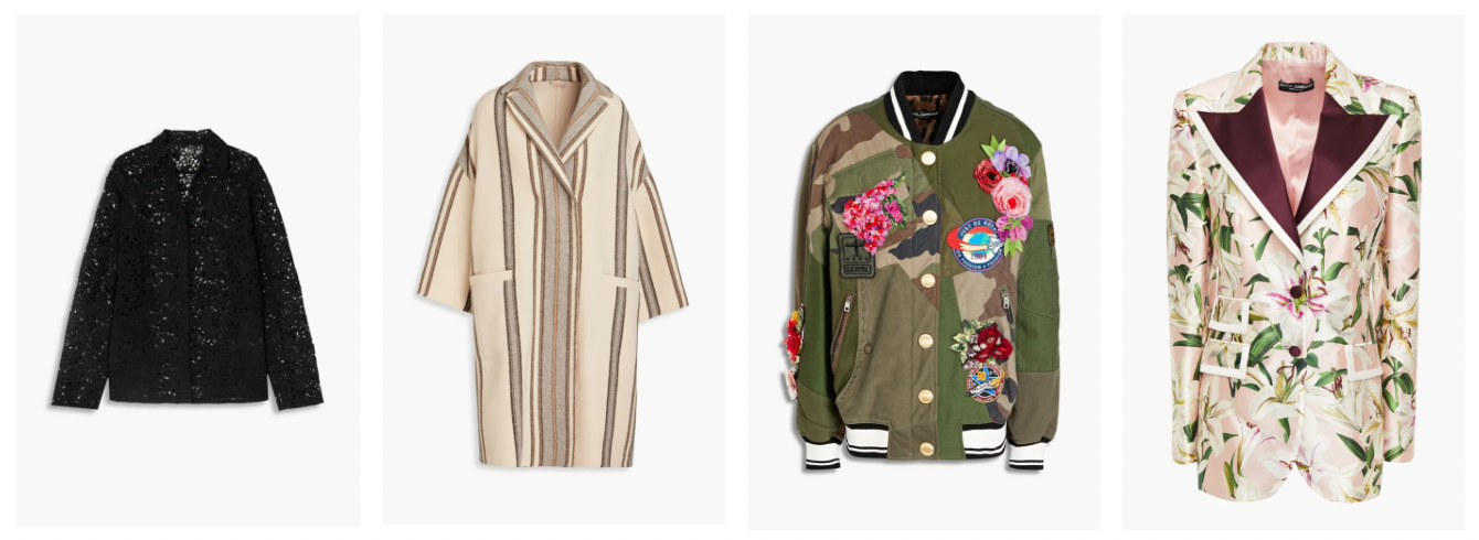 (左から)VALENTINO GARAVANI ¥285,616 / BRUNELLO CUCINELLI ¥510,605 / DOLCE & GABBANA ¥239,919 / DOLCE & GABBANA ¥109,417