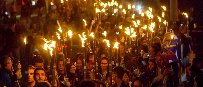 毎年10月に開催される「稲むらの火祭り」では、恒例行事として「稲むらの火」をモデルにした松明行列が行われます。行列参加者は町内外含め数百名を超える、町の一大イベントとなっています。