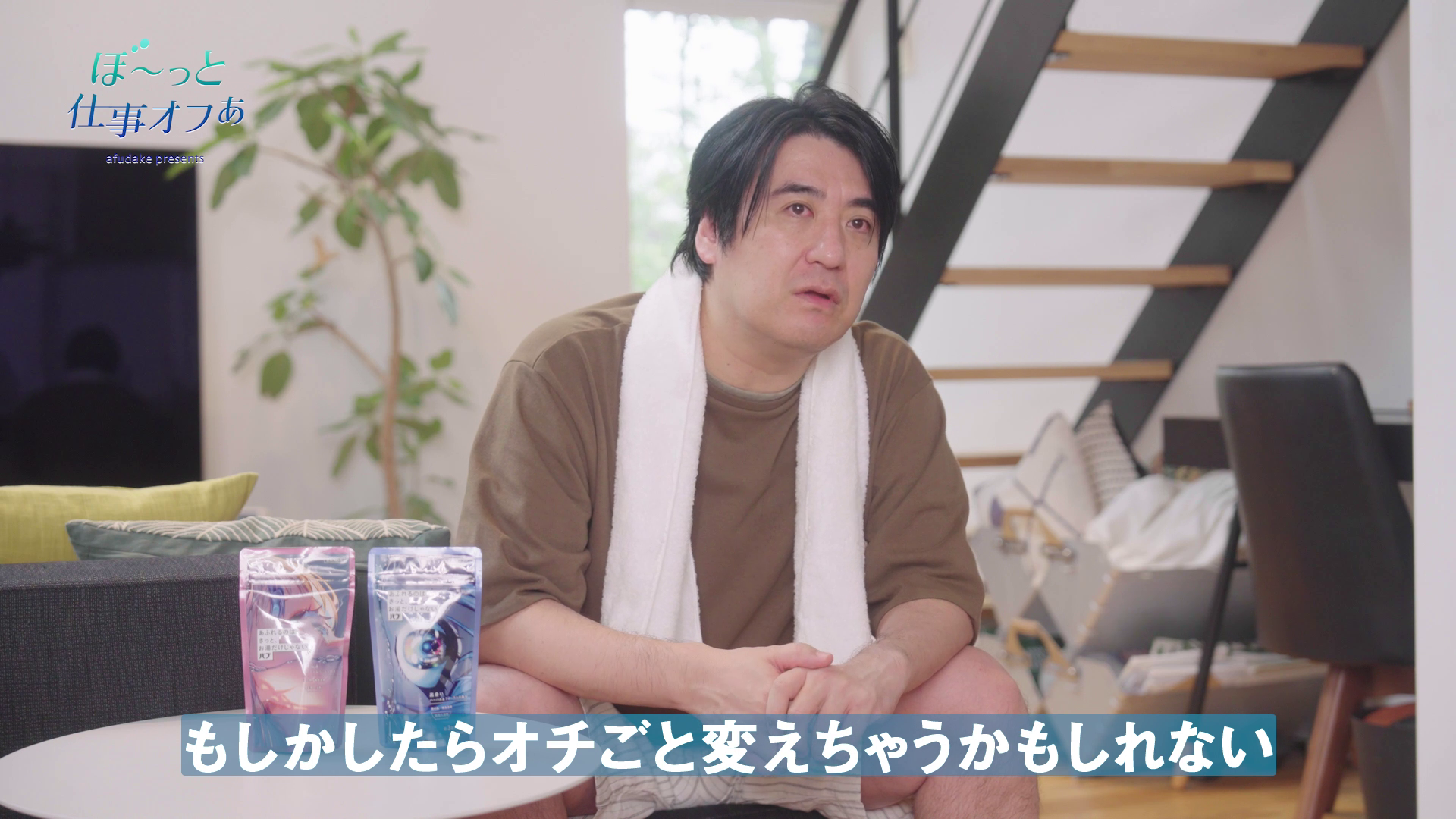 とあるスタジオに呼び出された佐久間さん。「バブあふだけ」のPR動画の撮影として、「とにかく何もしないでぼ~っとしていただきたい」と言われると、「仕事なのに?」と驚き、「普段は暇さえあれば動画を見てしまう。トイレでも動画を見ていて芸人に“やめろ”って言われた」と明かしました。「撮影まで近いけど脚本が上がっていないしオチが思いついていない」と話し、そんな心配ごとを抱えながらまずは特設した部屋でぼーっとしていただきました。終始「これ仕事ですか?」「変な仕事」と疑いながらも、リラックスグッズを試したり、ひたすらぼ~っと過ごして2時間。その後、お風呂に入っていただき「バブあふだけ」を試していただきました。お風呂に入った後は「バブあふだけ」の炭酸泡や香りがゆらぐ体験に感動する様子を見せ、「ちゃんと、ぼーっと出来た。」と感想を述べました。さらに、「何も考えずにぼーっとすることができていなかった。考える体力が戻ってきた気がする。」と喜ぶ様子を見せ、「大人はぼーっとするには準備がいる。何もしないと決めることが大事。脚本もリラックスした状態で新しいアイディアが浮かんできた。完成するかも」と話し、「今後も追い詰められたときは積極的にちゃんと、ぼーっとしたい」と話しました。