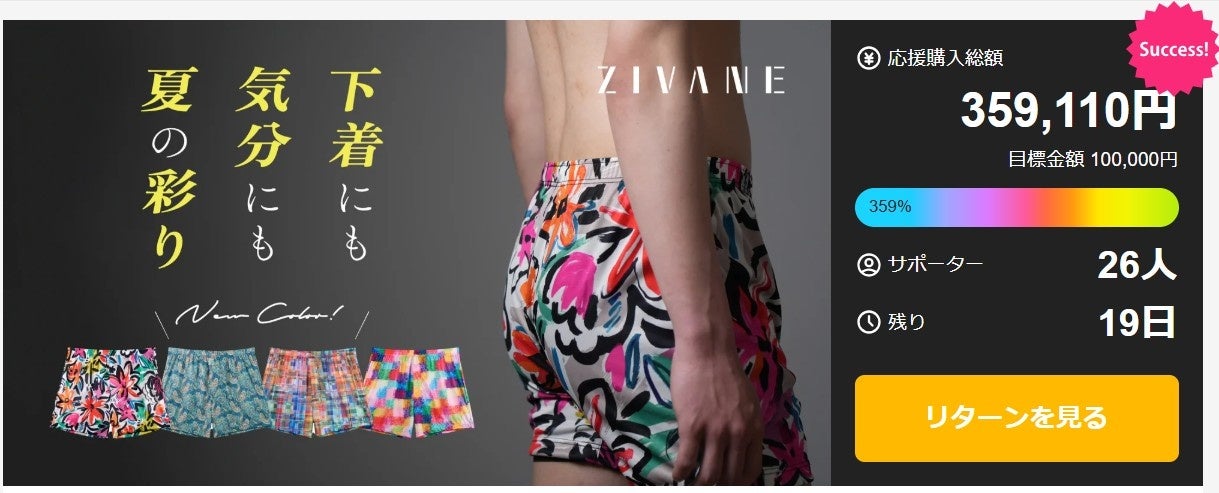 【Makuake公開24時間で目標金額350%達成】純国産メンズ下着ブランドZIVANE(ジバン)が新色発表!