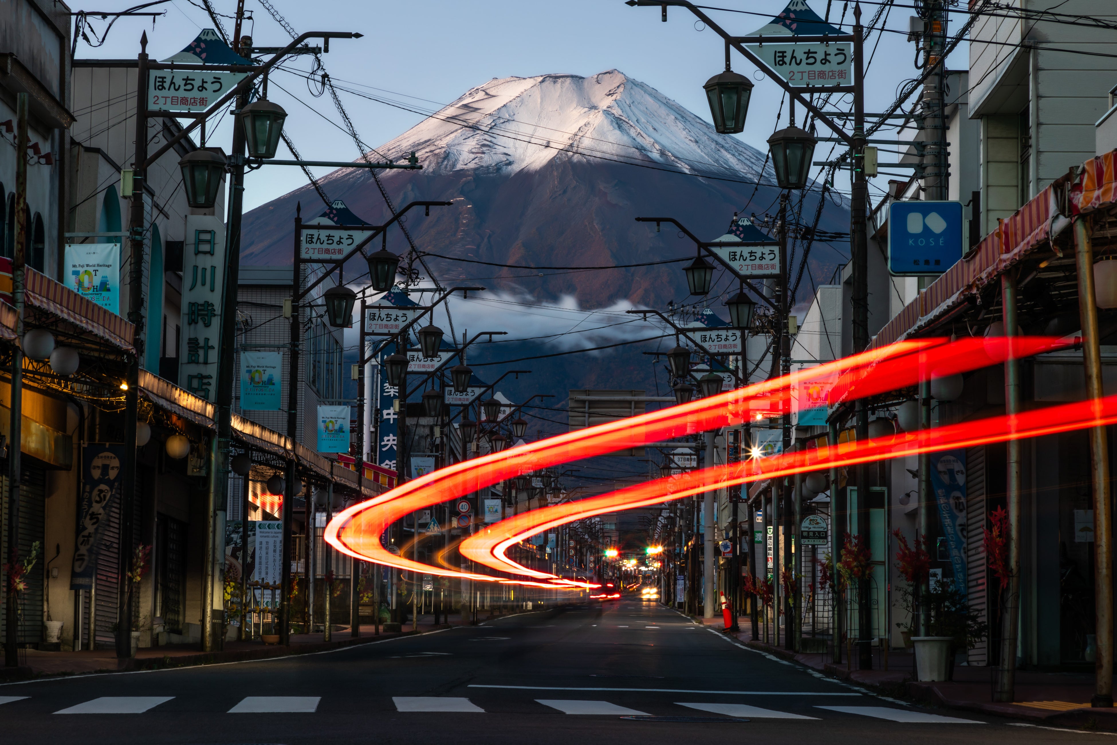 ②富士吉田市内から、「富士山借景」または「富士吉田の街並み」をテーマにした写真を撮影