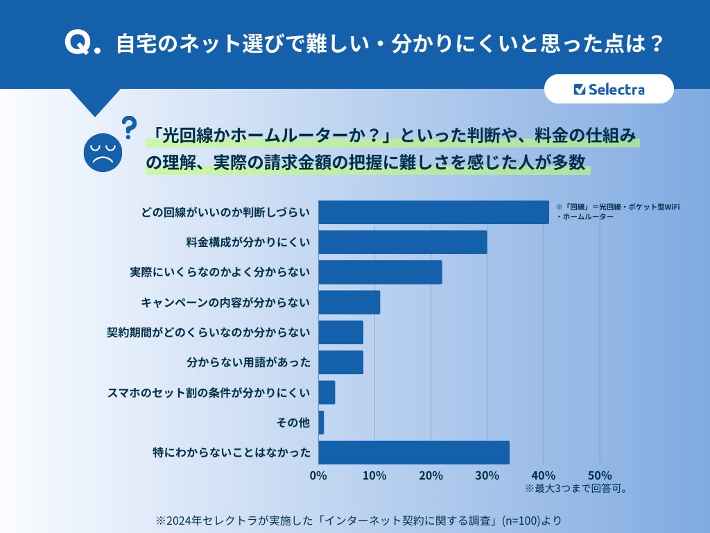 そんな中、セレクトラ・ジャパン株式会社(本社:東京都渋谷区 代表取締役:グザビエ・ピノン)は、「自宅のインターネットをご自身で選んで契約をしたことがある」と回答した男女100名を対象に独自調査の結果を公開しました。