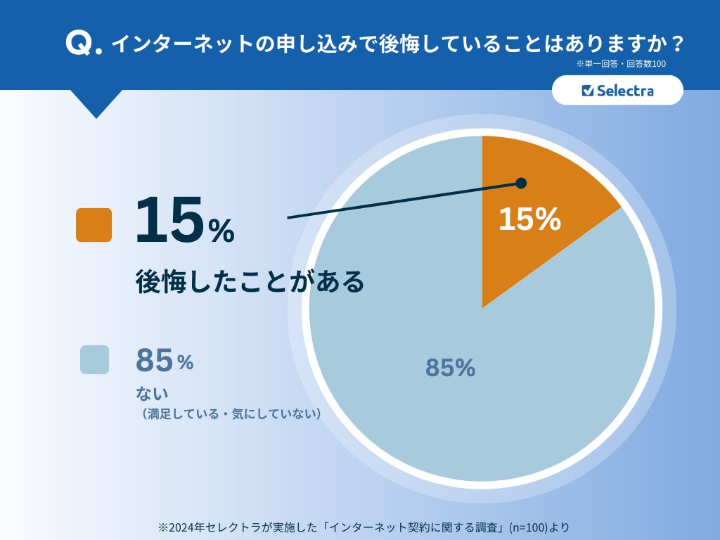 15%(6人に1人)がネット契約時に後悔したことがあると回答