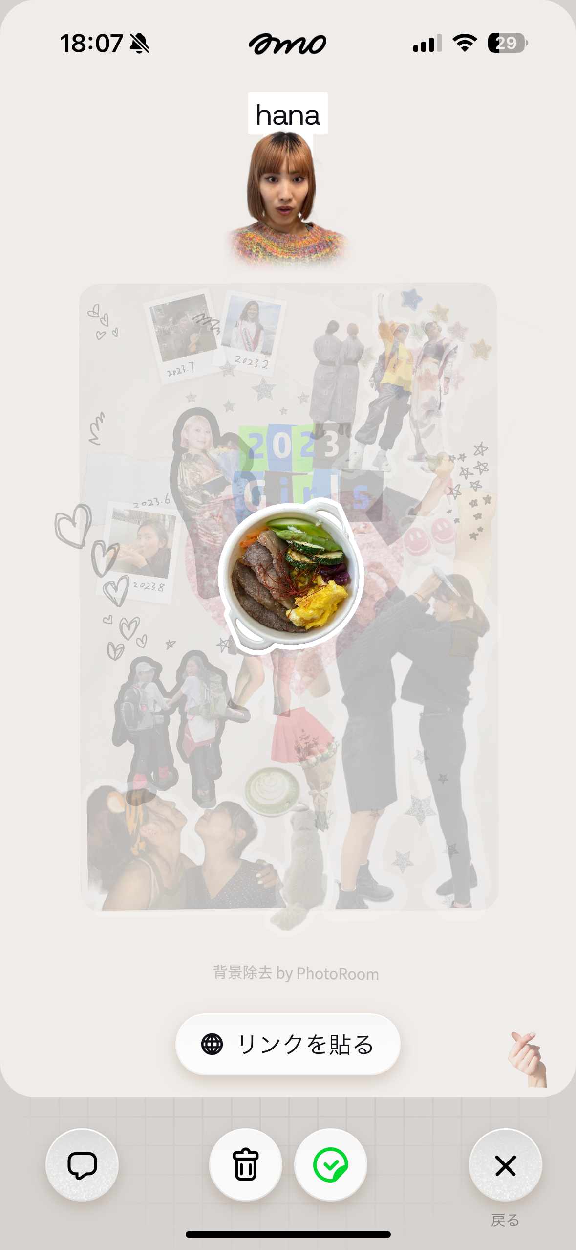 「PhotoRoom」のAPIが組み込まれたことで、アプリ内で写真をカメラロールからアップロードする際に、自動で被写体が高精度で切り抜かれ、装飾された素材が数秒で生成される機能が備わりました。
