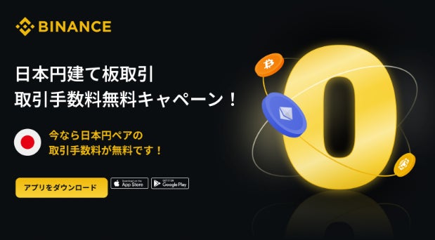 日本円取引ペア3種BNB/JPY・BTC/JPY・ETH/JPYを追加し、手数料無料キャンペーンを実施