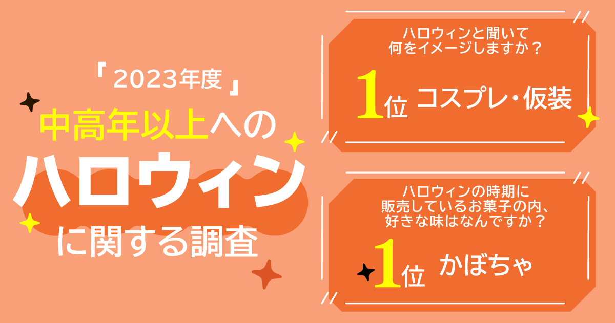 【2023年度中高年以上へのハロウィンに関する調査】中高年も「ハロウィン」はコスプレ/仮装をイメージ⁉ハロウィンのお菓子は「かぼちゃ」味が好き!