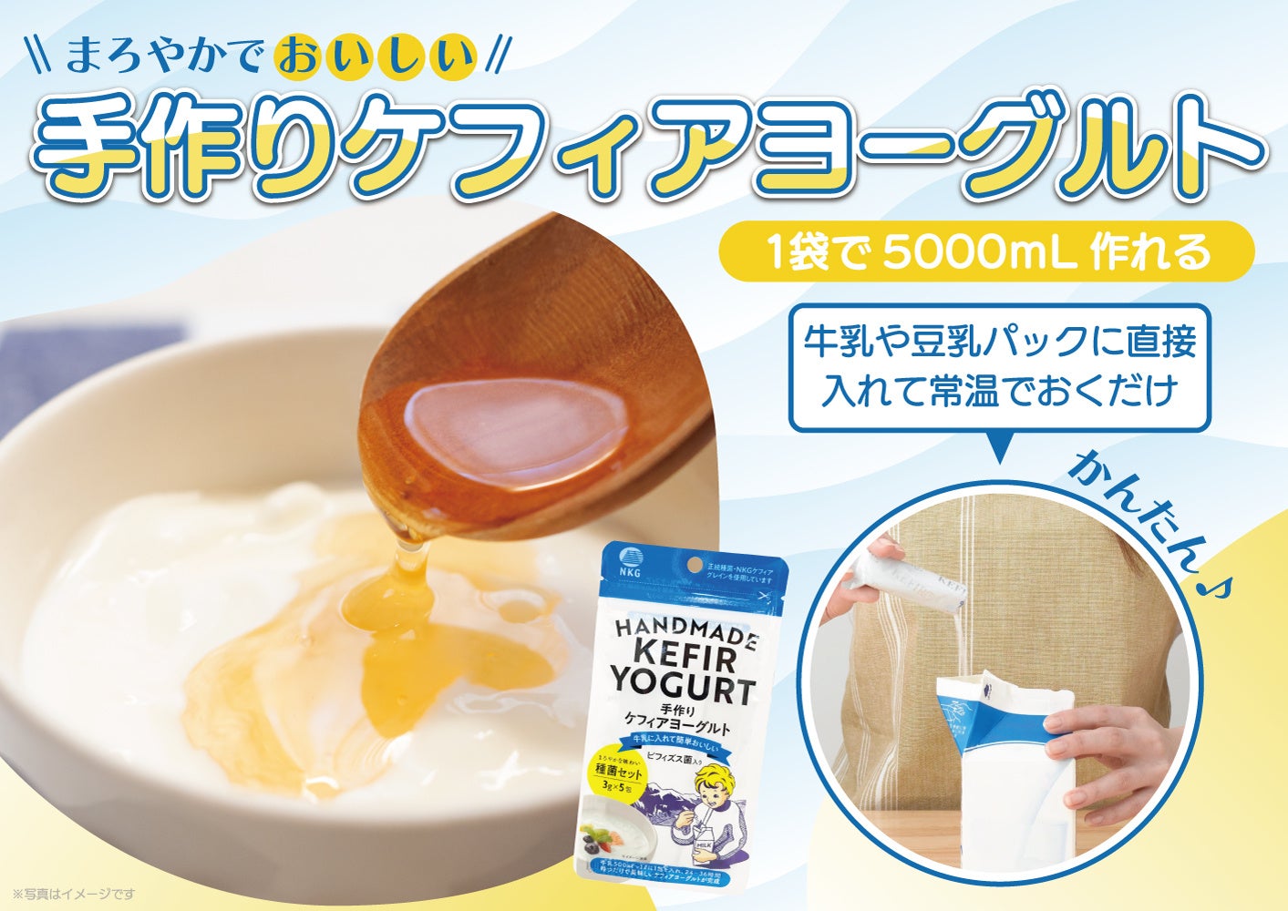 牛乳1Lパックに加えるだけで簡単ヨーグルト!新発売「手作りケフィアヨーグルト種菌セット」
