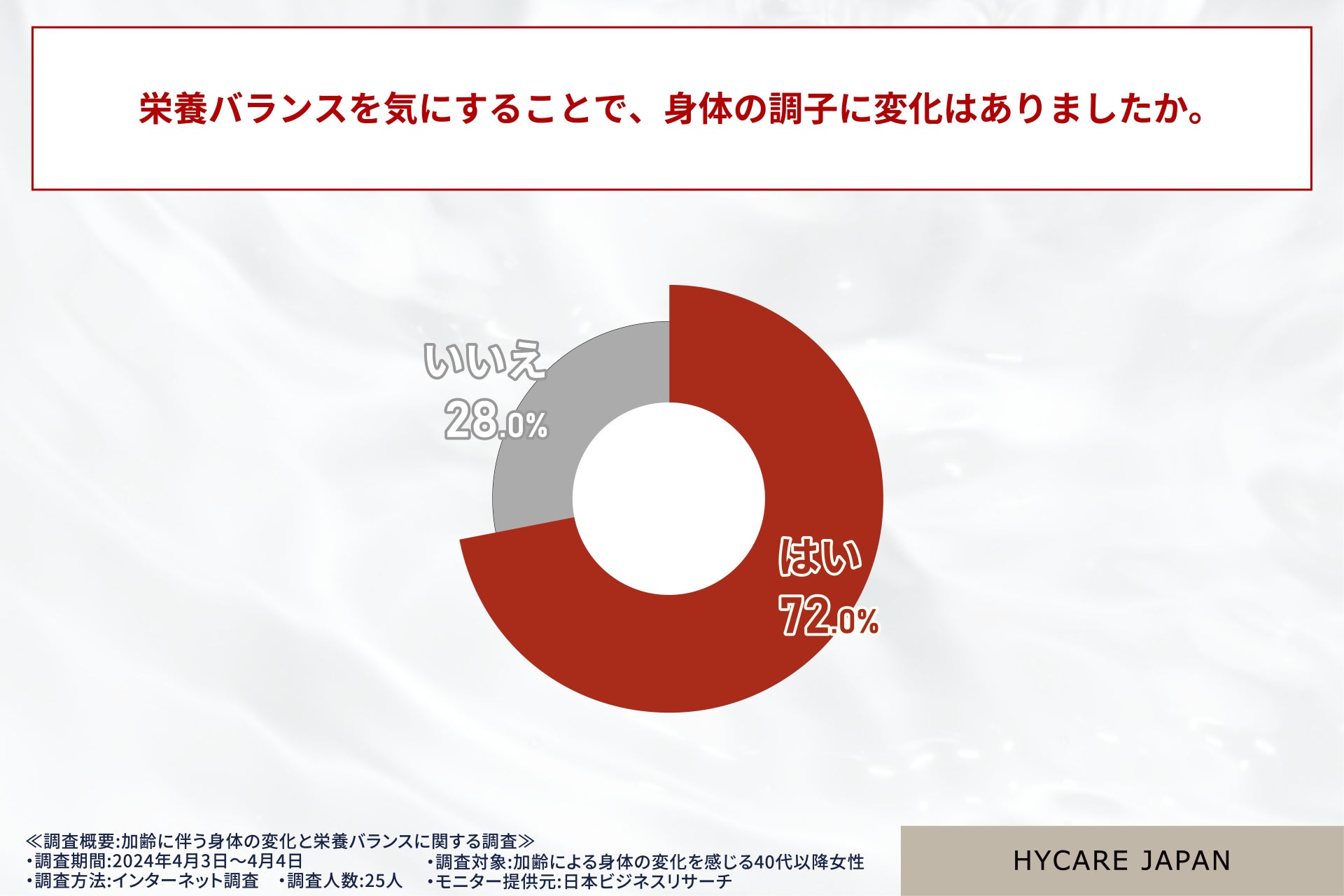 「栄養バランスを意識することで身体の変化を感じた人は〇〇%!」40代以降の女性338人に加齢に伴う身体の変化と栄養バランスに関する意識調査を実施!