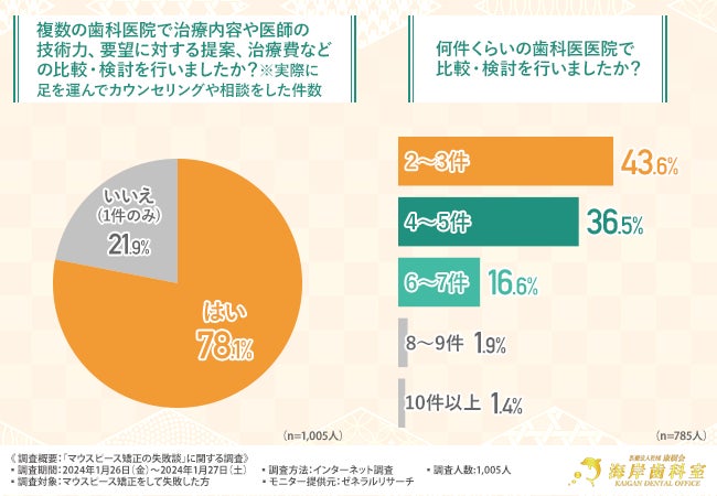 約8割が複数の歯科医院でマウスピース矯正の相談をしたことも判明しました。