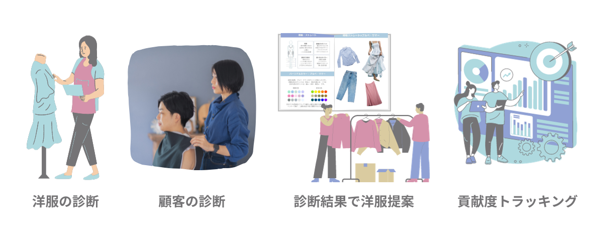 ポップアップの販促をサポートする骨格・パーソナルカラー診断を提供し、ロジカルな似合うで納得感のある購買体験を実現します。