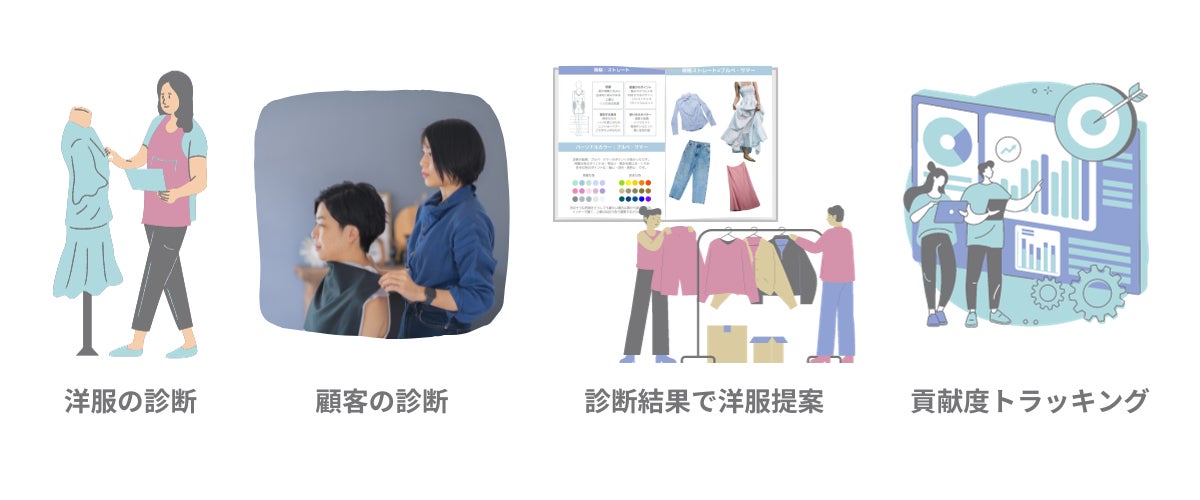 さらに、世界中の使われなくなった服を活かすきっかけ作りを提供する為に、骨格・パーソナルカラー診断向けサロンの運営を2023年11月に開始。