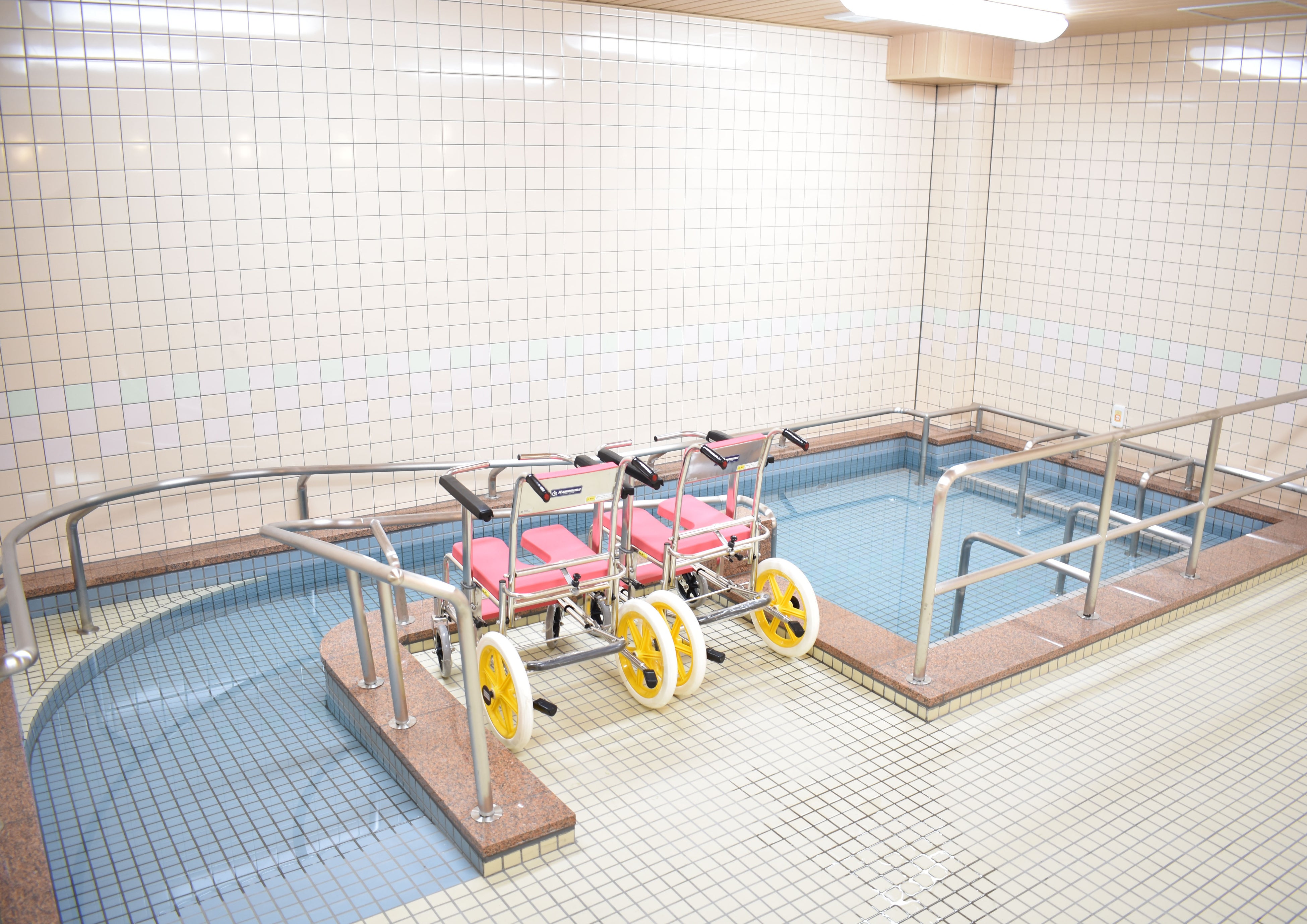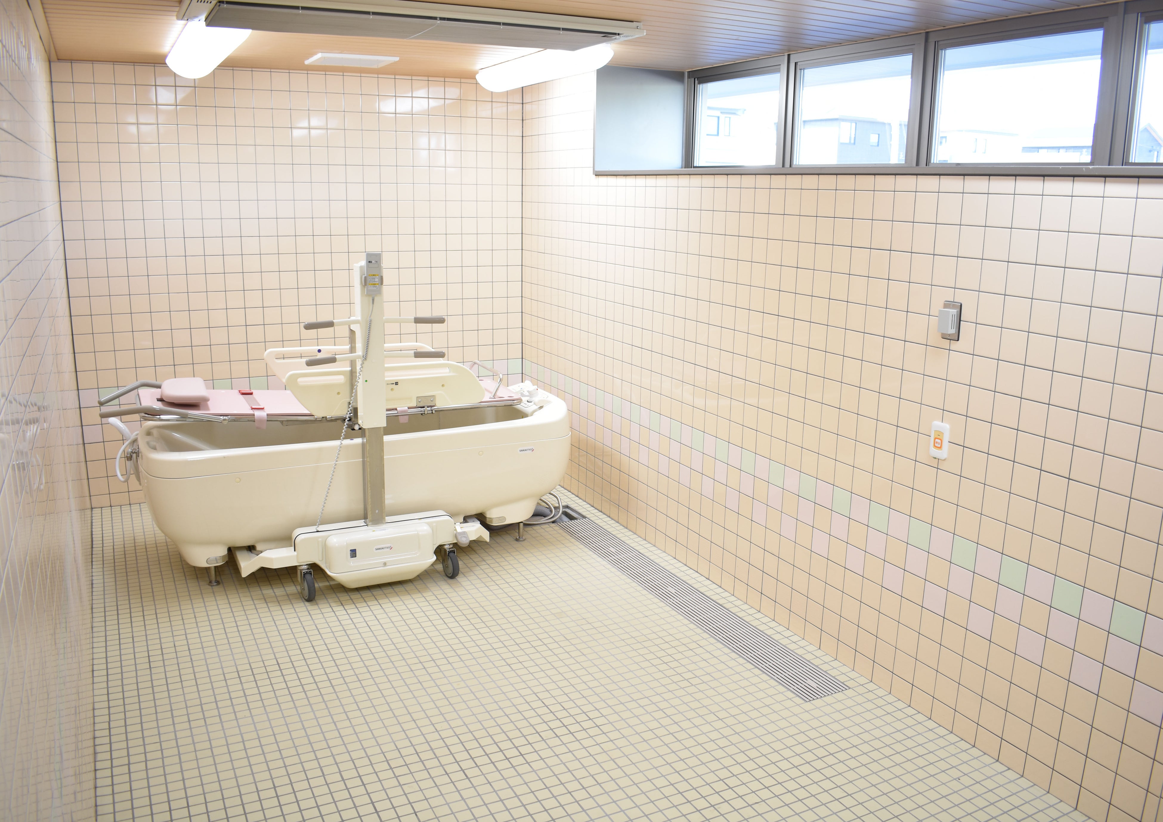 大浴場には浴室用車いすのまま浴槽に入れるようスロープを設置し、可能な限り大きなお風呂でゆったりと入浴いただけるよう工夫しています。もちろん、寝たきりの方にもご入浴していただけるよう、機械浴槽もご用意しています。★★内覧会当日、デモンストレーションをご覧いただけます★★