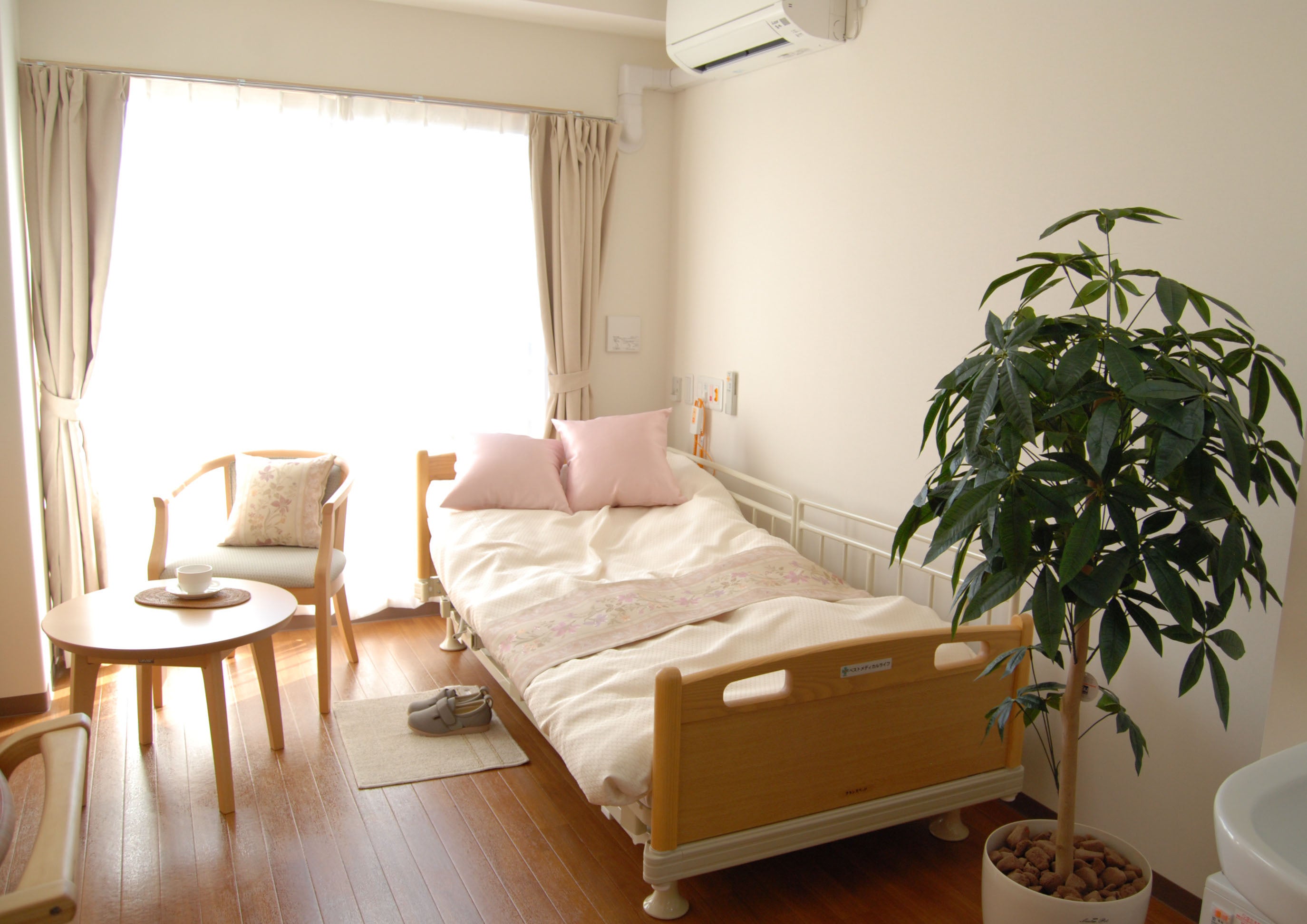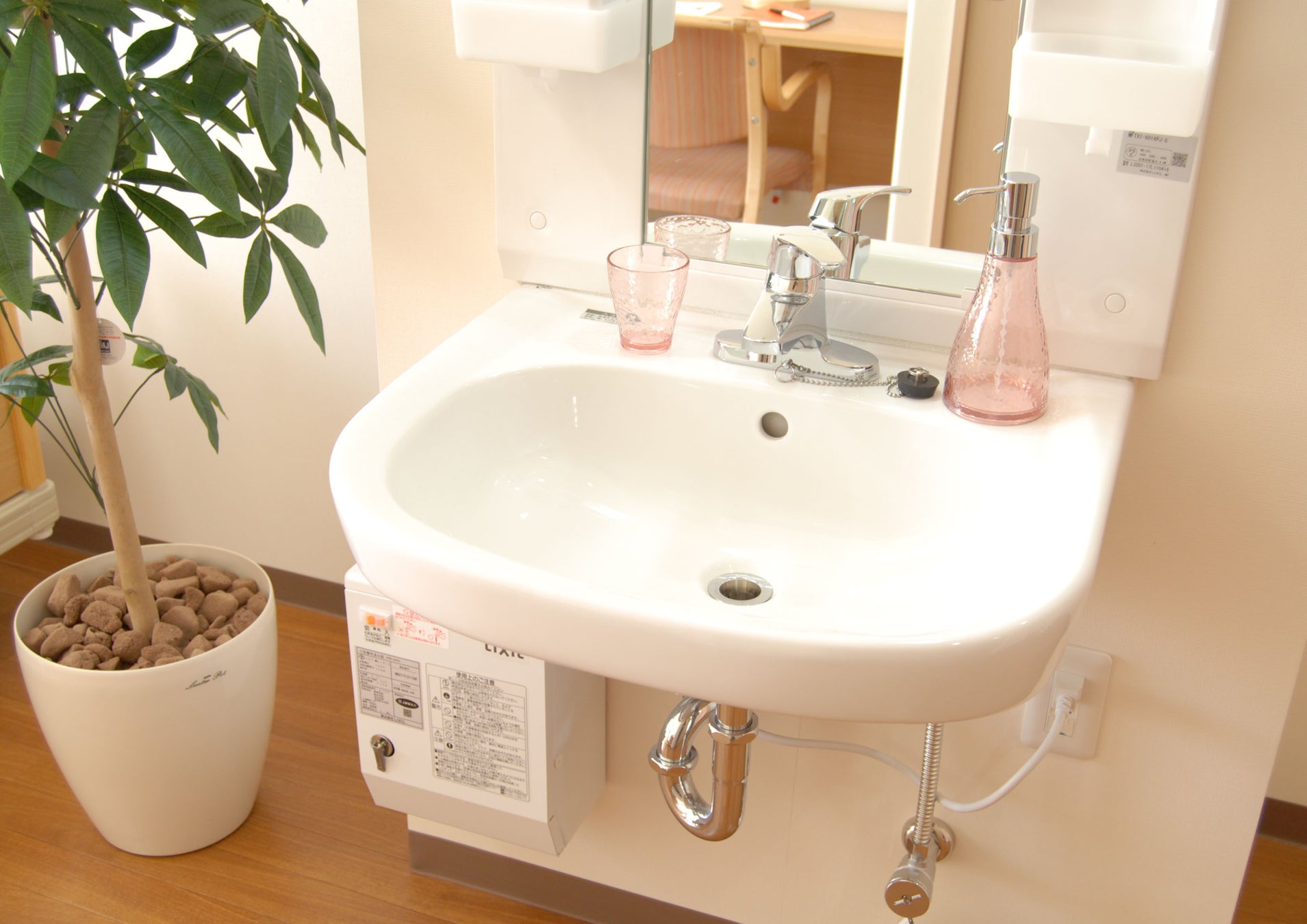 全てのお部屋が、お一人おひとりのプライバシーに配慮した個室(ワンルームタイプ・18.00~18.60㎡)で、緊急コールやスプリンクラーといった高齢者の安全をお守りする設備はもちろん、介護専用ベッドや手元で温水を操作できる車いす対応の洗面台をはじめとする、快適な生活を実現するためのさまざまな設備を整えています。