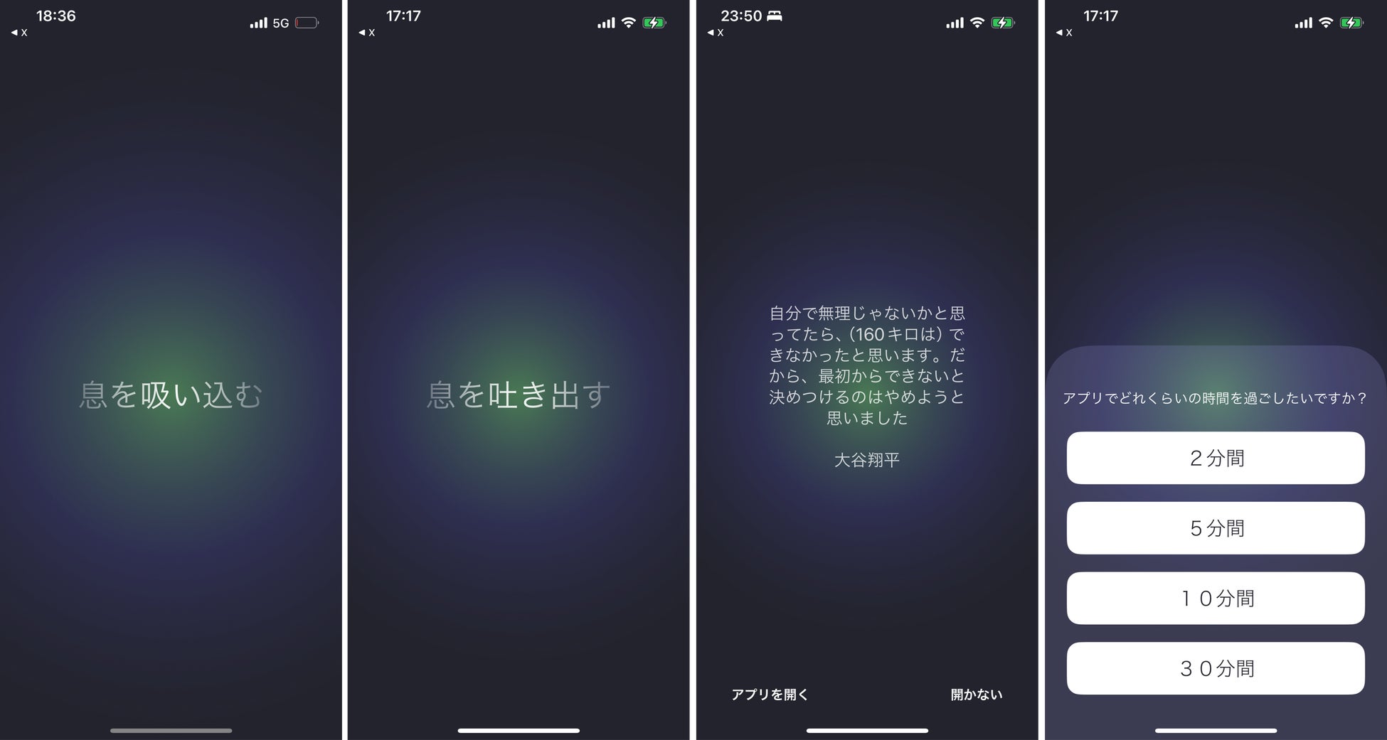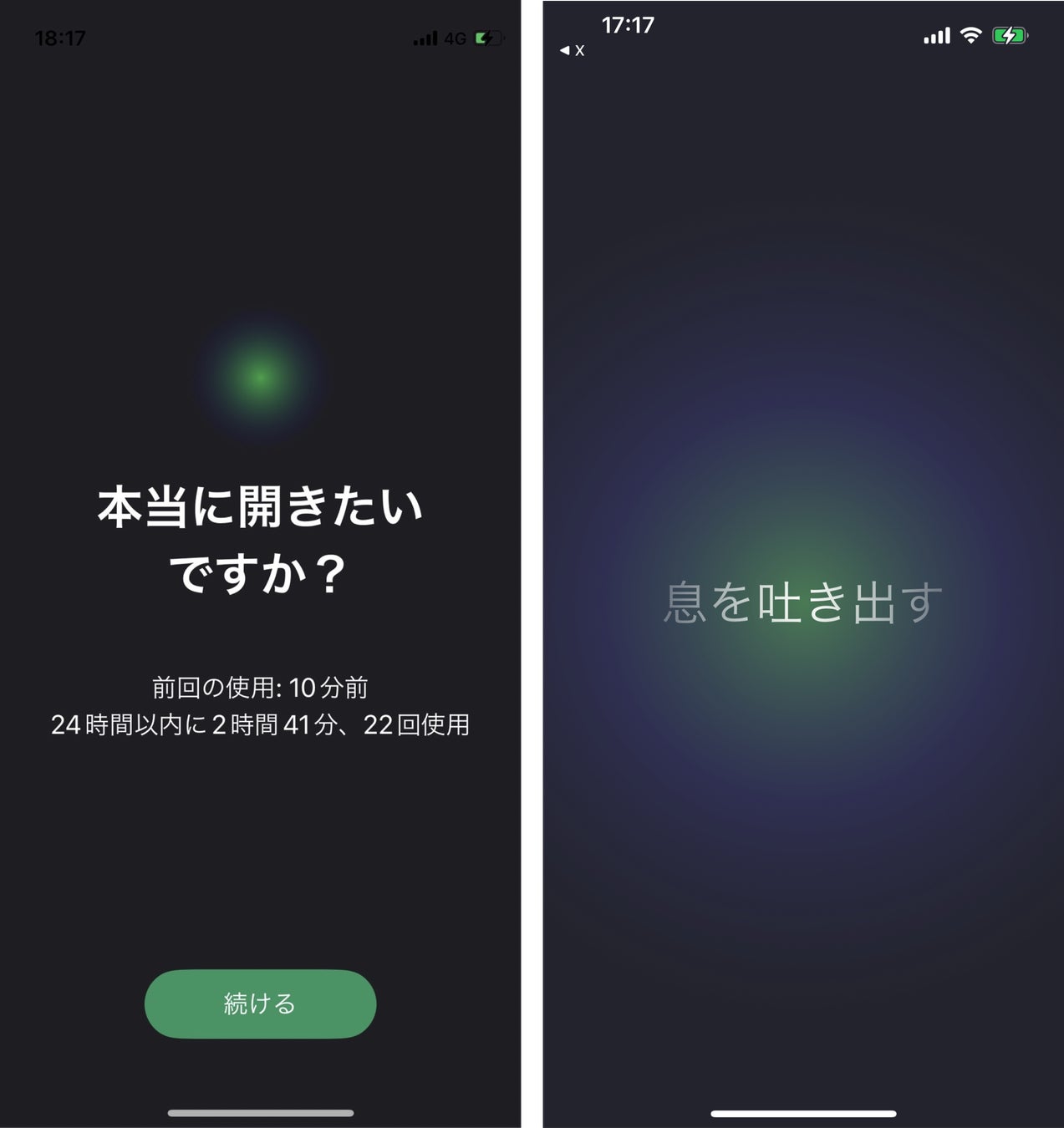 Xを開こうとすると、前回いつ開いたかや、24時間以内に何分開いたかが分かります。その後、深呼吸のセッションがはじまります。深呼吸をしながら、Xを開きたい衝動をおさえます。
