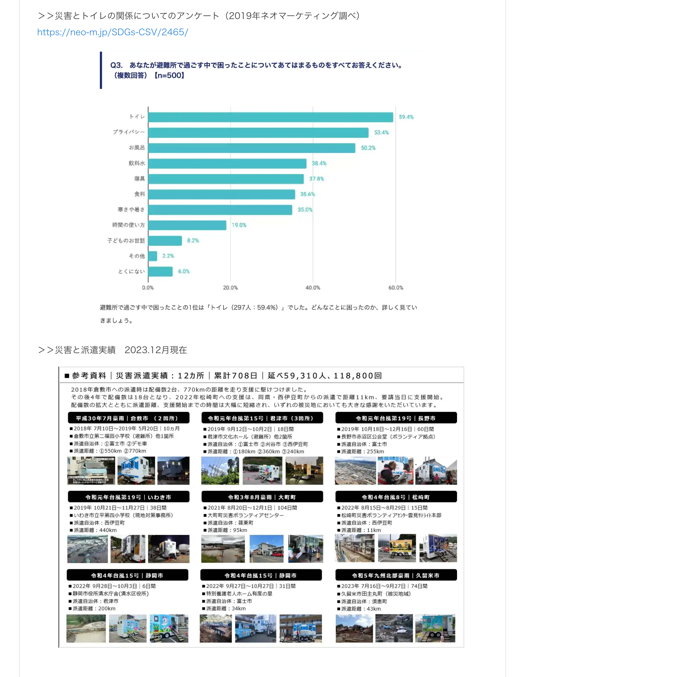 20223年現在、この国から、災害死・災害関連死をゼロにするため、災害派遣トイレネットワークプロジェクト「みんな元気になるトイレ」災害派遣人材ネットワーク「WAA ReSCue」「みんな元気になる福祉避難所」「災害関連死ゼロサミット」などを推進中。