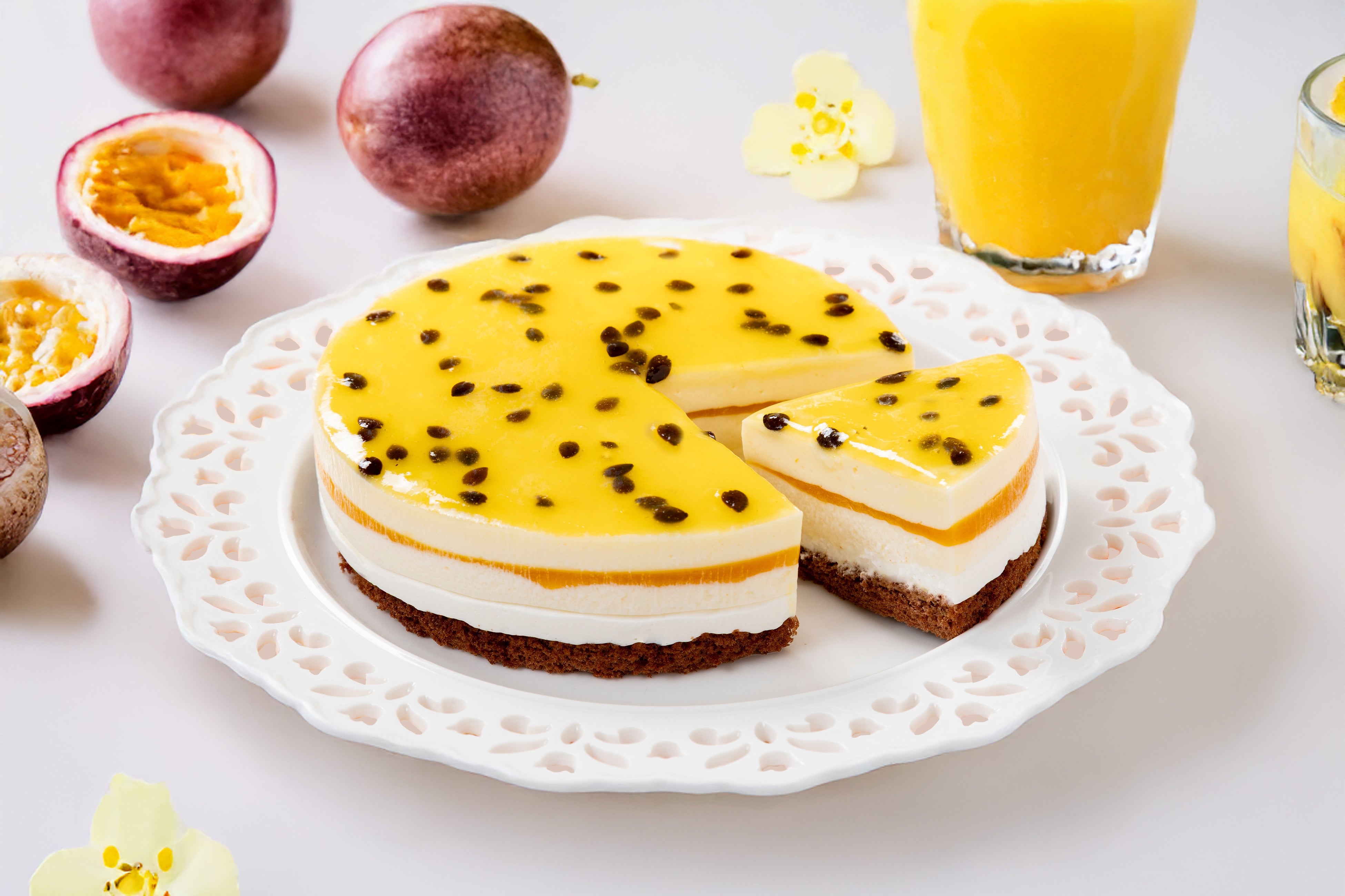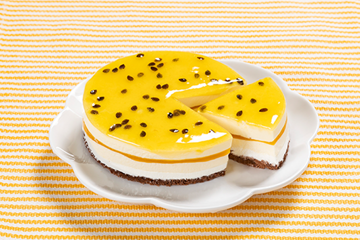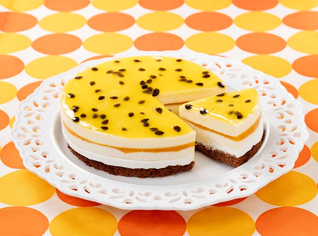 岩手県産のたのはた牛乳を使用した、甘さ控えめなオレンジムースの間に、酸味が効いたパッションフルーツソースを挟み、上にはパッションフルーツのシード入りソースをトッピング。さっぱりとした味わいで、暑い夏にぴったりの一品です。