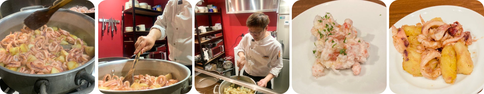 ■ビズトロアジル蒲田店の田中シェフがこども達に最高の食を提供いたします。本日は赤エビのフレンチサラダ、イカとジャガイモのガーリックソテーを作っていただきました!!