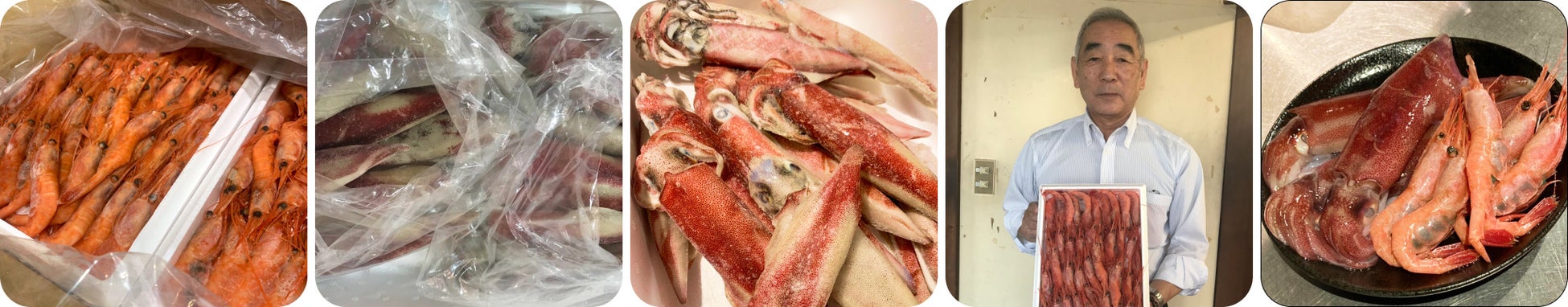 ■古野電気様の元社員、但馬(タジマ)漁業協同組合長より赤エビと白イカをいただきました。大漁です♪