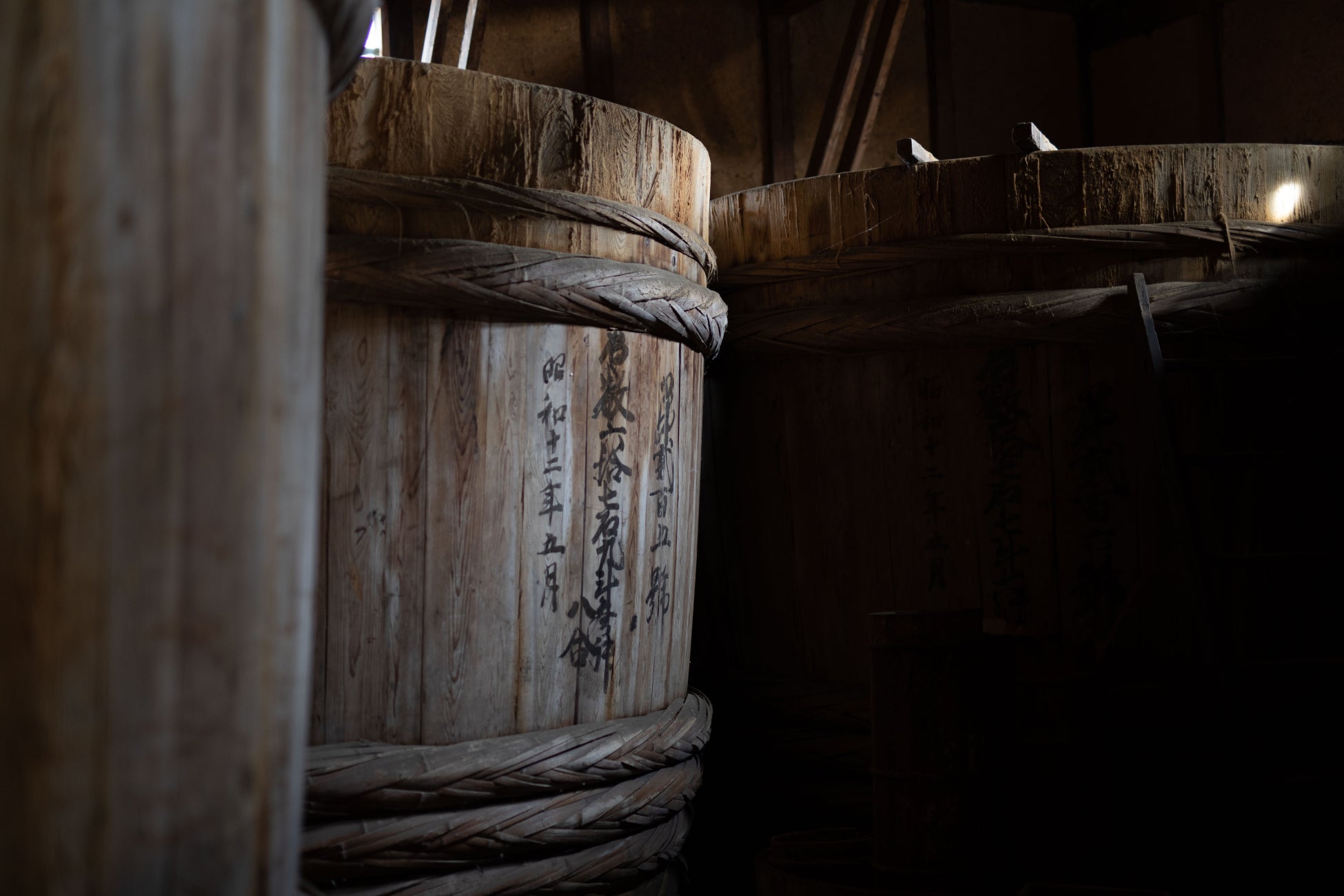 「カコン…」「シャパシャパシャパ…」といった、たまり醤油が作られる際の音を、醸造元の「中定(なかさだ)商店」でプロの音楽家が収音。木桶の底にたまった液体(たまり)を柄杓ですくいあげ、何度もなんども桶の上からかけ戻すことで、豆味噌の発酵で生まれた旨味成分がたまりに溶け込み、旨味とコクが深まっていく工程が、まるで目の前で繰り広げられているかのような没入感たっぷりの展示です。