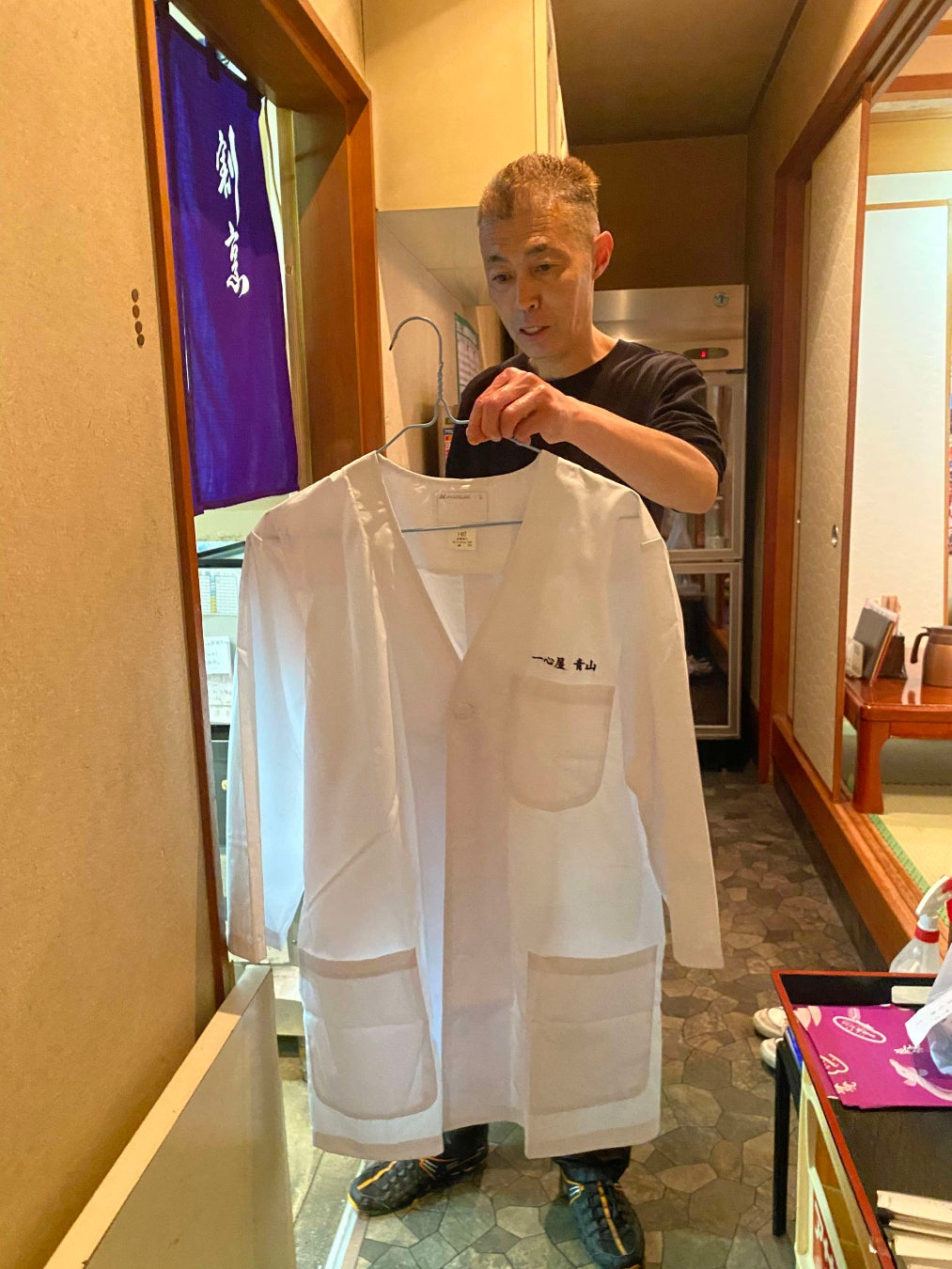 愛知県には「豆みそ」「たまり」「しろしょうゆ」という3つの独自の発酵食文化がありますが、中でも「たまり」のコクのある醤油をタレに使った「うな重」はこの地域ならではのもの。たまり醤油はコク深くとろみがあるぶん、焼くときに焦げやすいため、この味を引き出すには、高度な焼きの技術が必要となるそうです。炭火で焼き上げられた香ばしさを会場にお持ちすべく、うな重の香りが染みついた大将の白衣をお借りし展示。嗅いで頂けます。