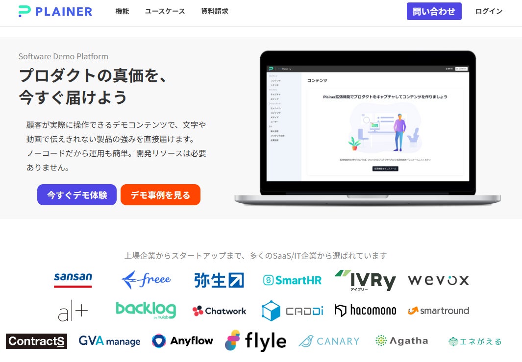 事業内容:ソフトウェア企業向けデモプラットフォーム「PLAINER」の開発と提供