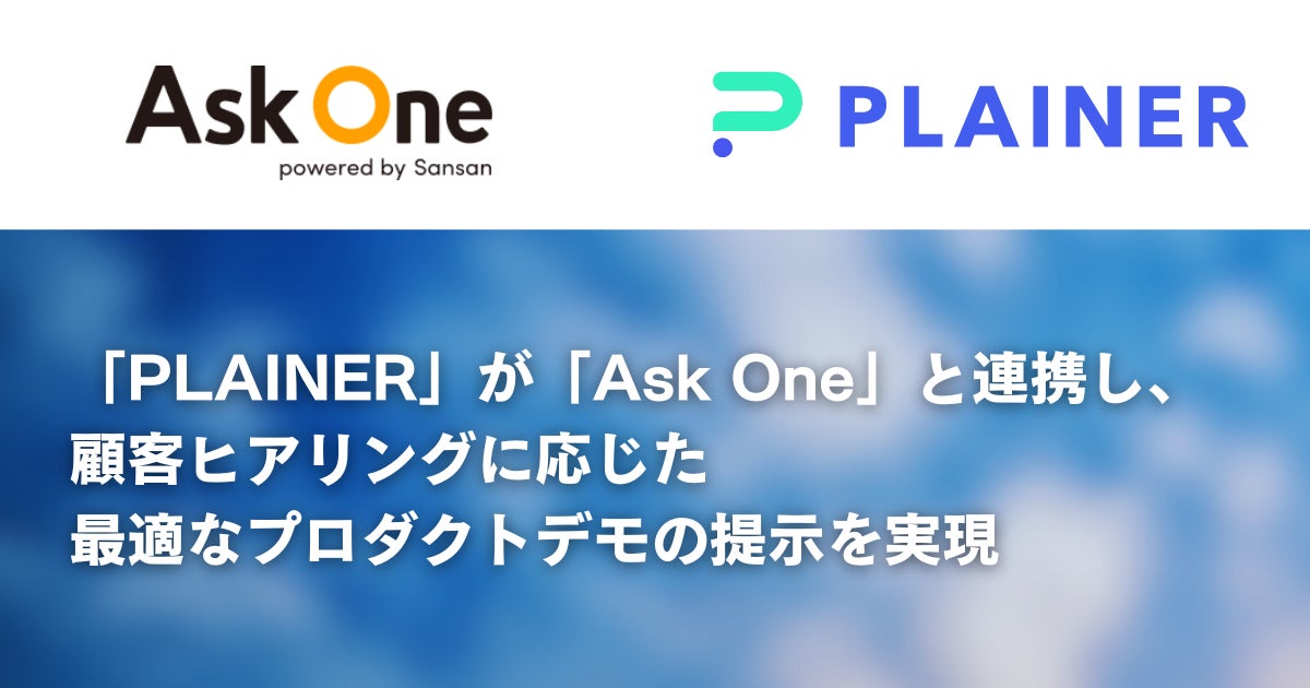「PLAINER」が「Ask One」と連携し、顧客ヒアリングに応じた最適なプロダクトデモの提示を実現