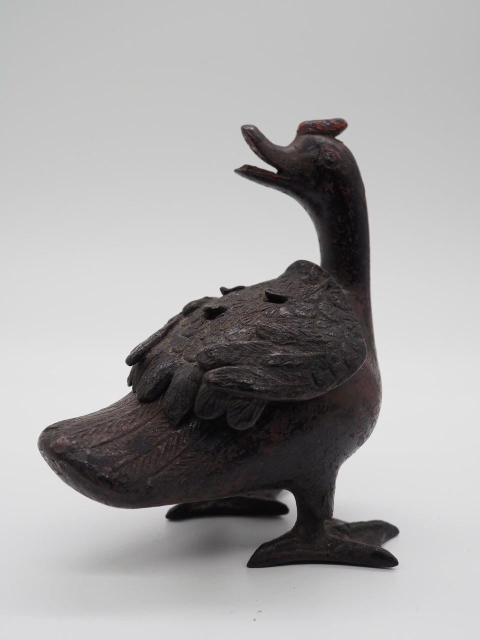 上:木彫獅子狛犬(室町時代)中:海獣葡萄鏡(唐時代)下:色絵鴨小香炉(江戸時代)
