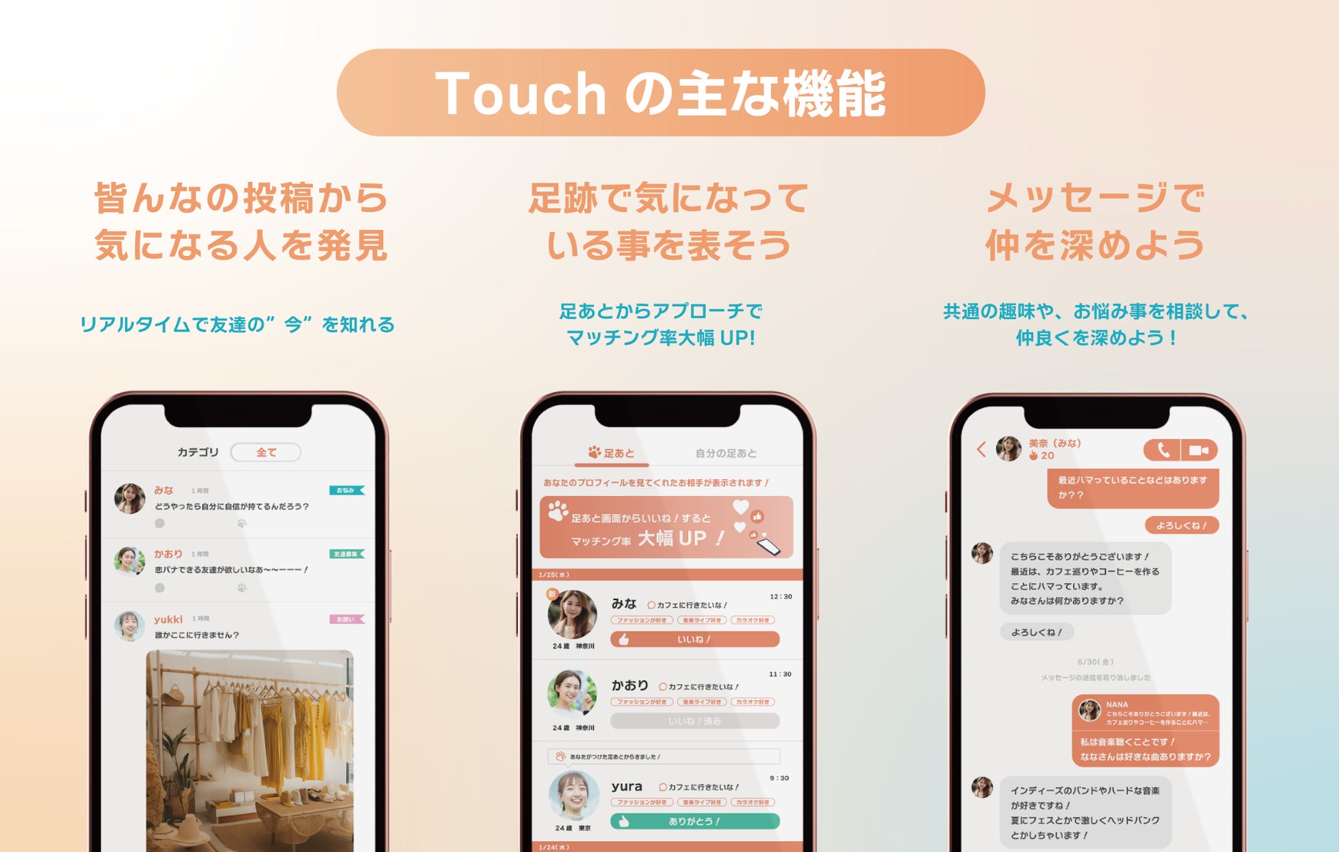 最新Z世代の友達作りはアプリ!?女性限定アプリTouch(タッチ)がマッチング数100万回を突破!