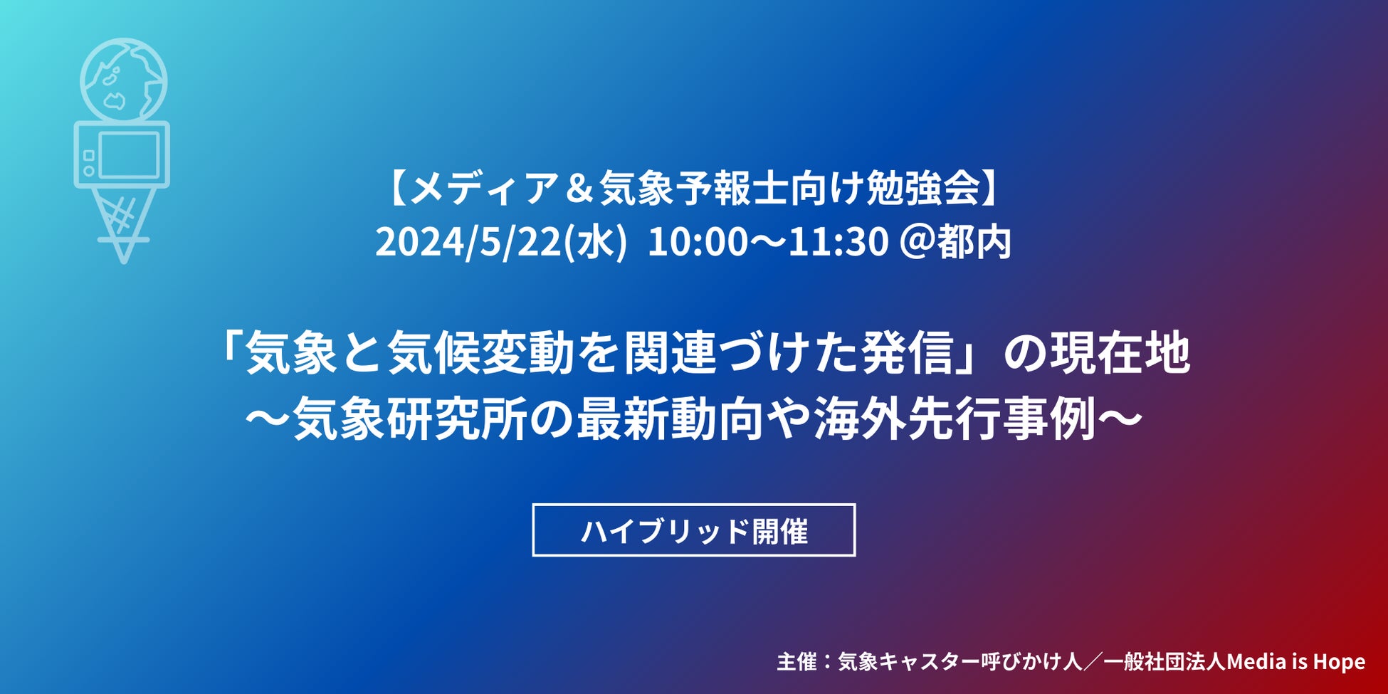 2024年5月22日(水) 【メディア&気象予報士向け勉強会「気象と気候変動を関連づけた発信の現在地」をハイブリッド開催@都内】を気象キャスター呼びかけ人と共催します!!