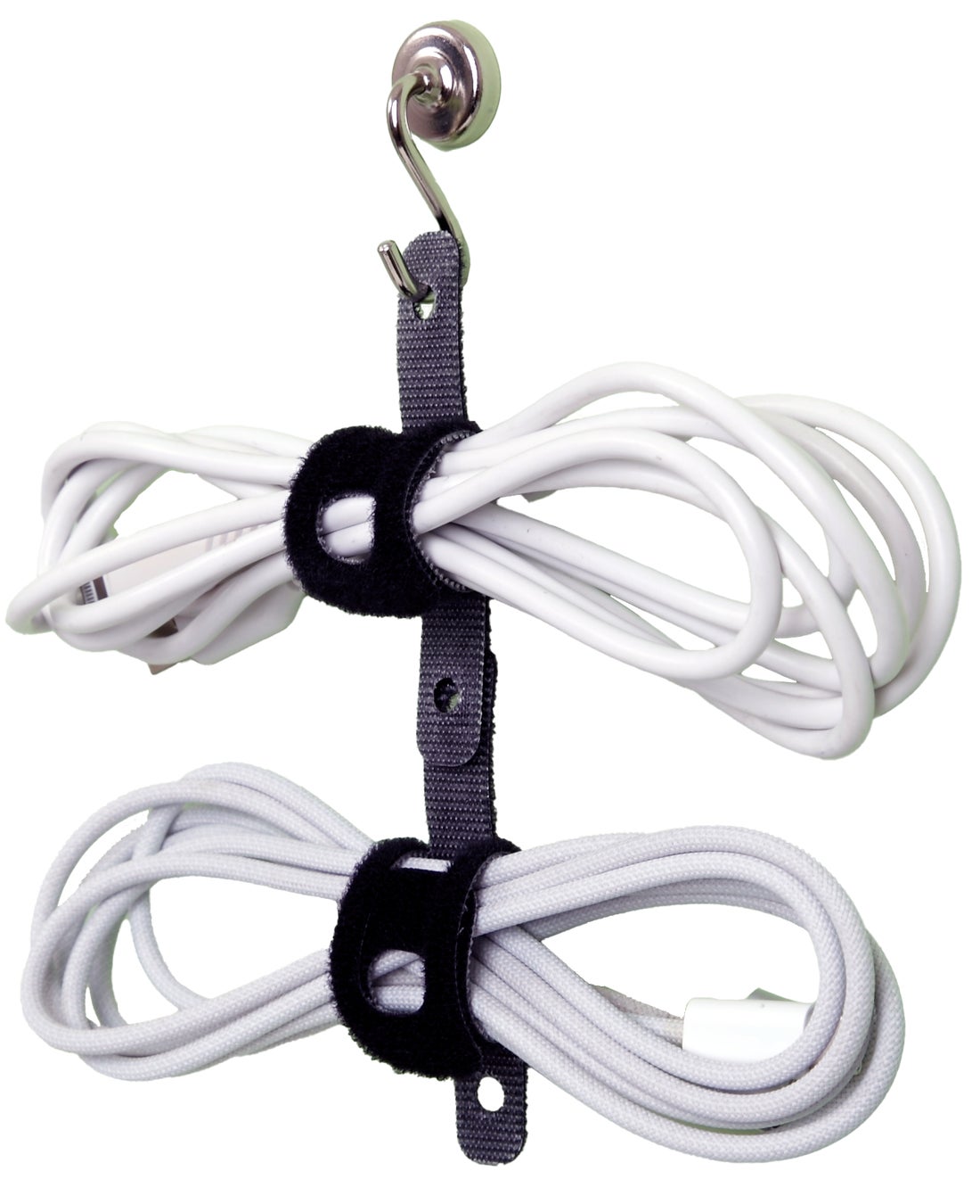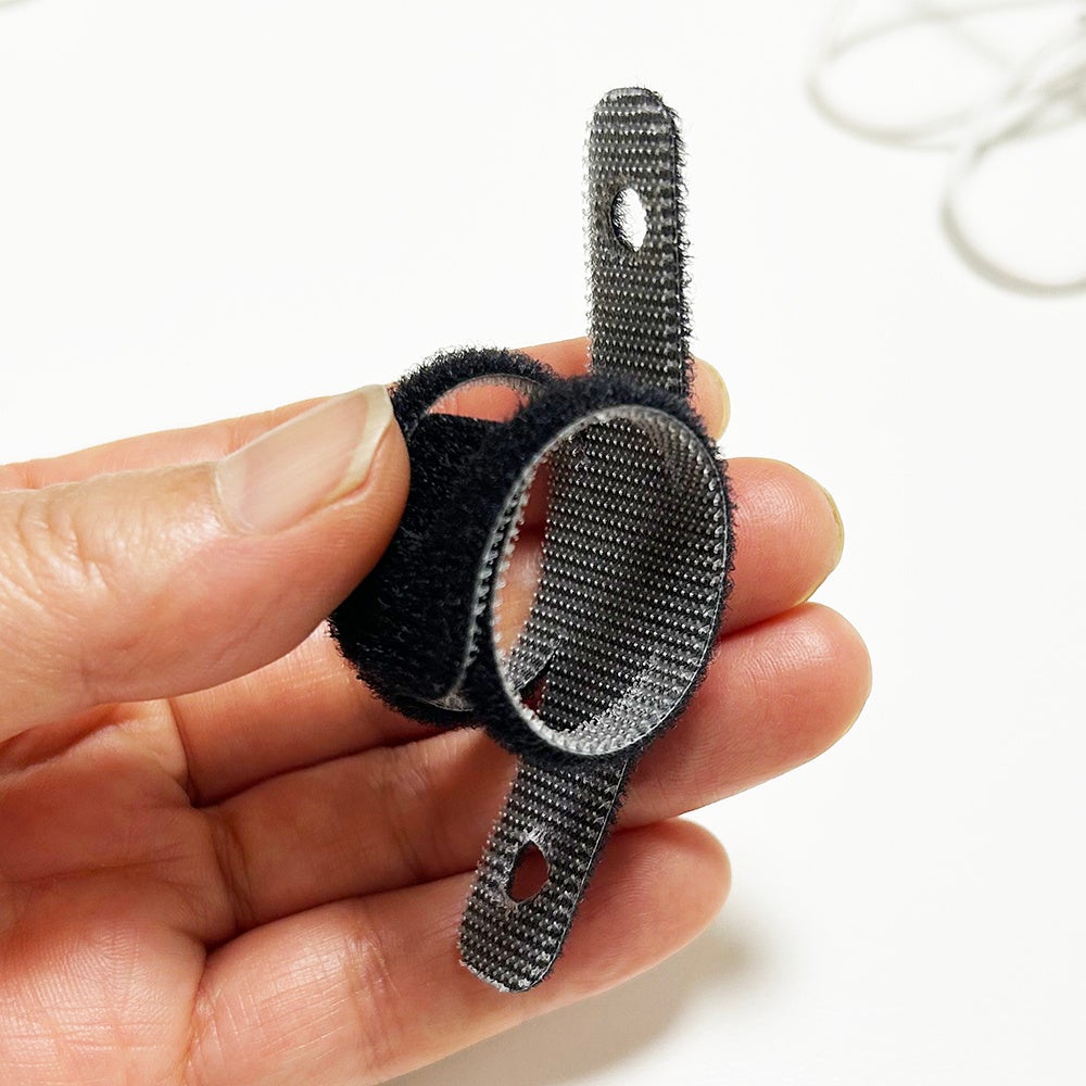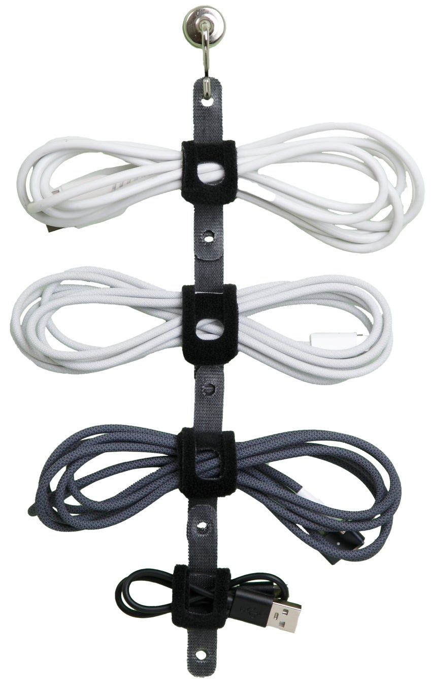 面ファスナー同士を繋げれば、複数のケーブルをまとめて一括収納。太いコードにも対応。
