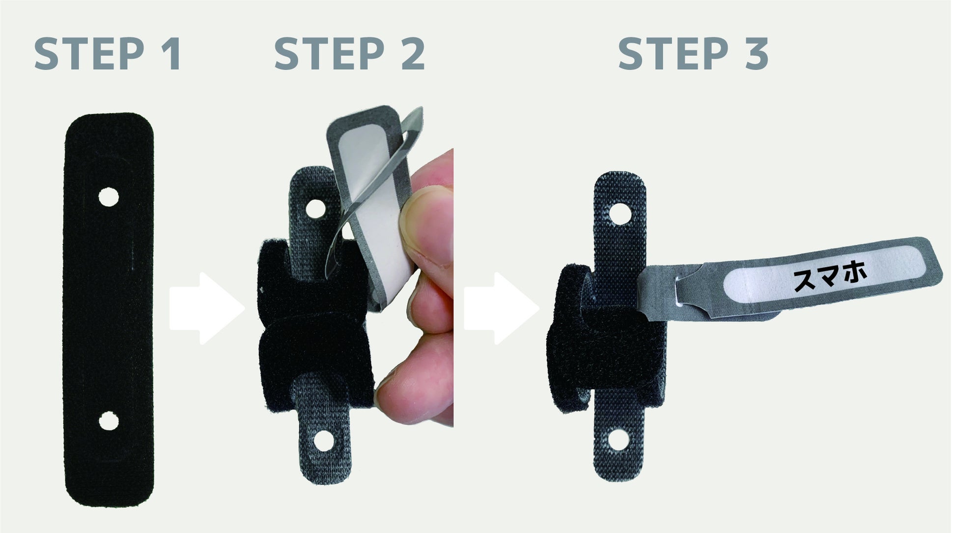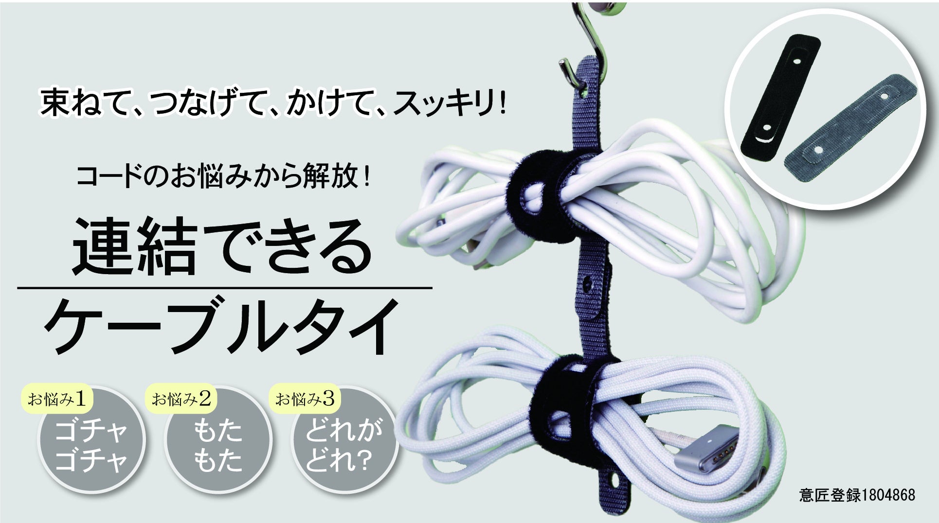 面ファスナー新素材(クラレファスニング株式会社製「マジックバンド®」)をオリジナル形状に加工した新商品!邪魔になりがちなコード、ケーブルなどをまとめて『掛けられる・連結できる』