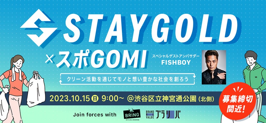 (本社:東京都渋谷区、代表:柏村淳司、以下「当社」)は、2023年10月15日(日)当社が主催するクリーンイベント「スポGOMI×STAYGOLD in渋谷」にて、新たなコンテンツとして豪華参加特典や、イベント終了後には当社の人気ファッションブランドがお得に手に入るファミリーセールの開催が決定したことをお知らせします。