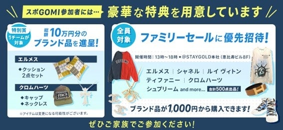 【超豪華ブランド大放出のファミリーセールを同日開催】スポGOMI×STAYGOLD in渋谷 クリーンイベント参加応募締切間近!