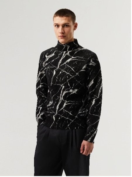 マーブルプリントニット タートルネックセーター