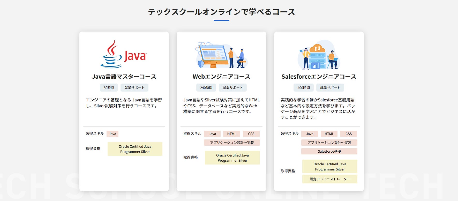 「Tech(テック)スクールオンライン」で学べる内容(コース)